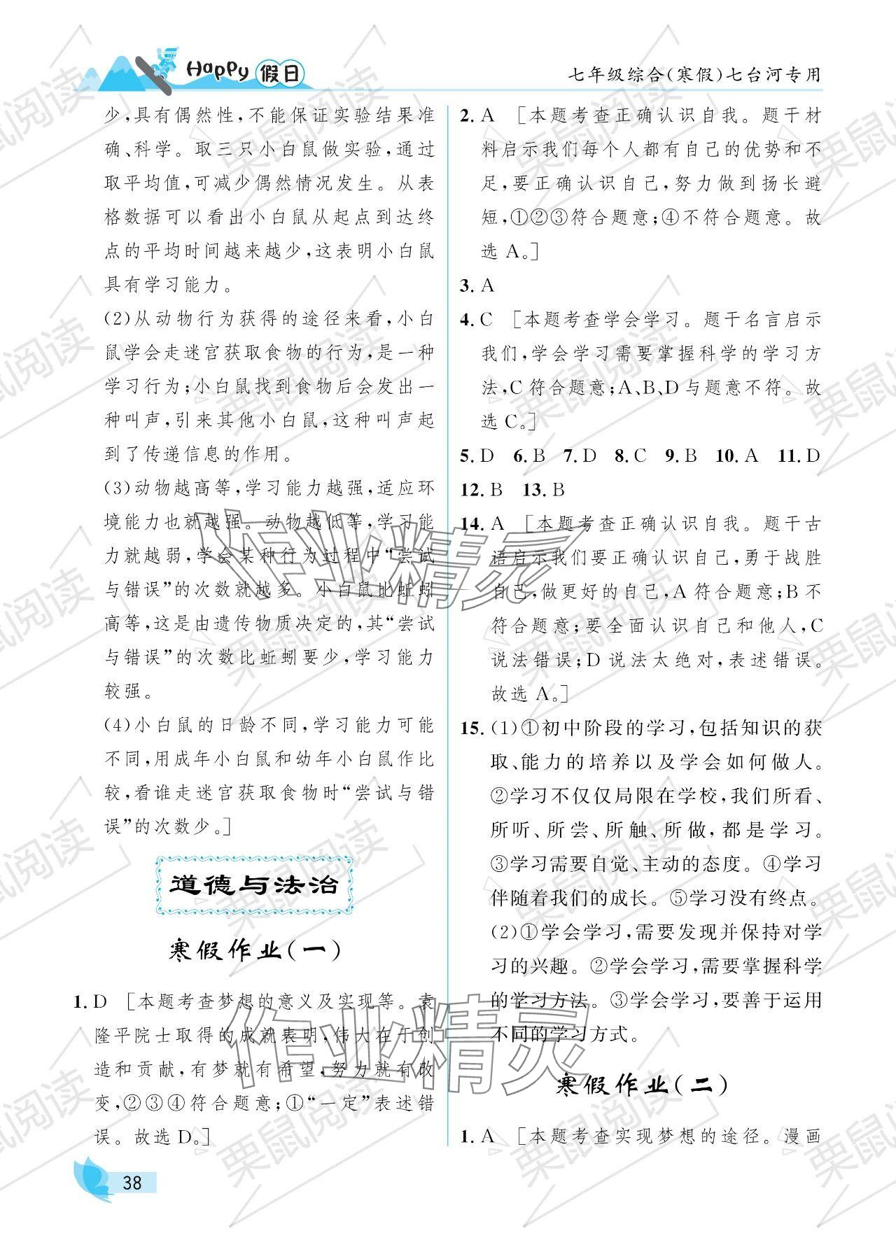 注:目前有些书本章节名称可能整理的还不是很完善,但都是按照顺序排列的,请同学们按照顺序仔细查找。练习册 2024年寒假Happy假日七年级综合七台河专版 答案主要是用来给同学们做完题方便对答案用的,请勿直接抄袭。