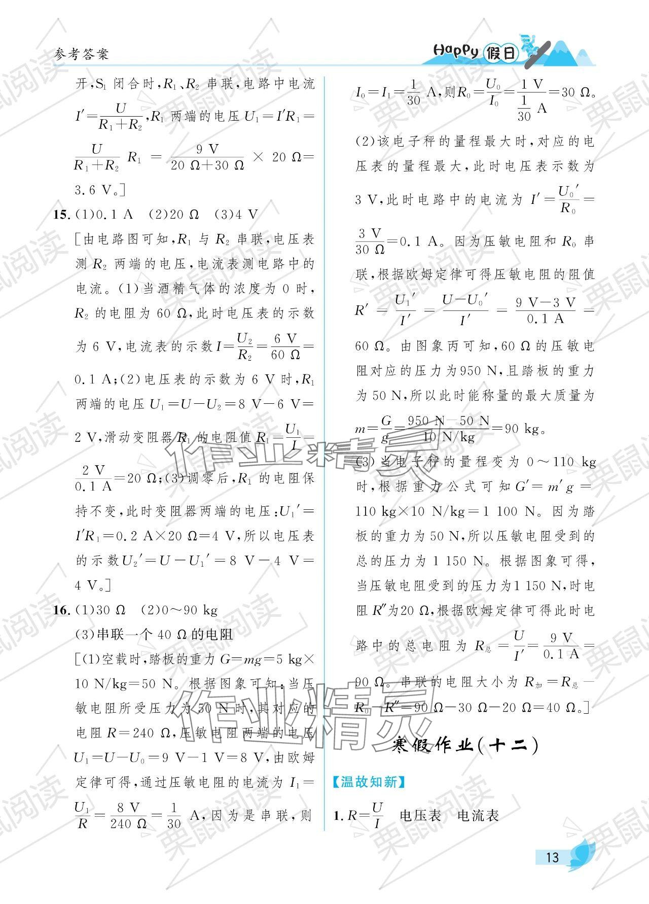 2024年寒假Happy假日九年级物理鲁科版五四制