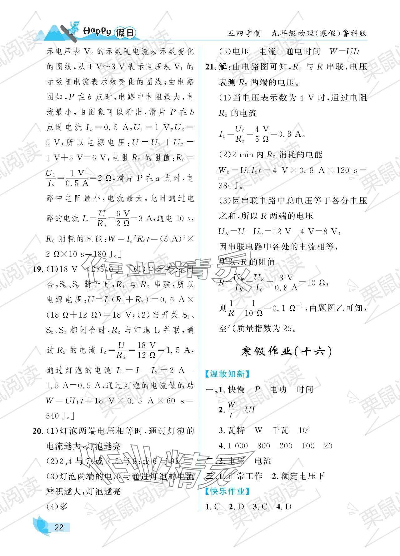 2024年寒假Happy假日九年级物理鲁科版五四制