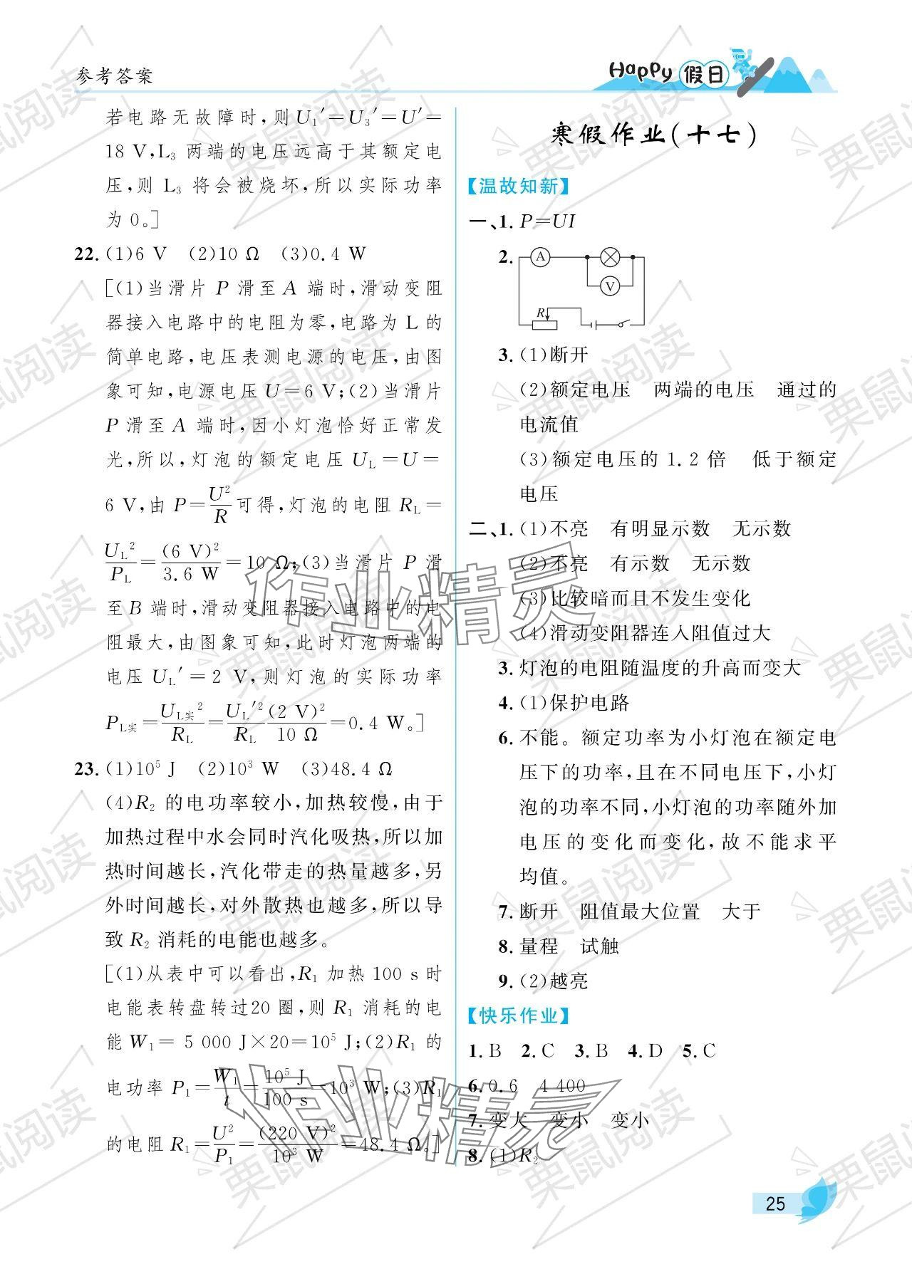 2024年寒假Happy假日九年级物理鲁科版五四制