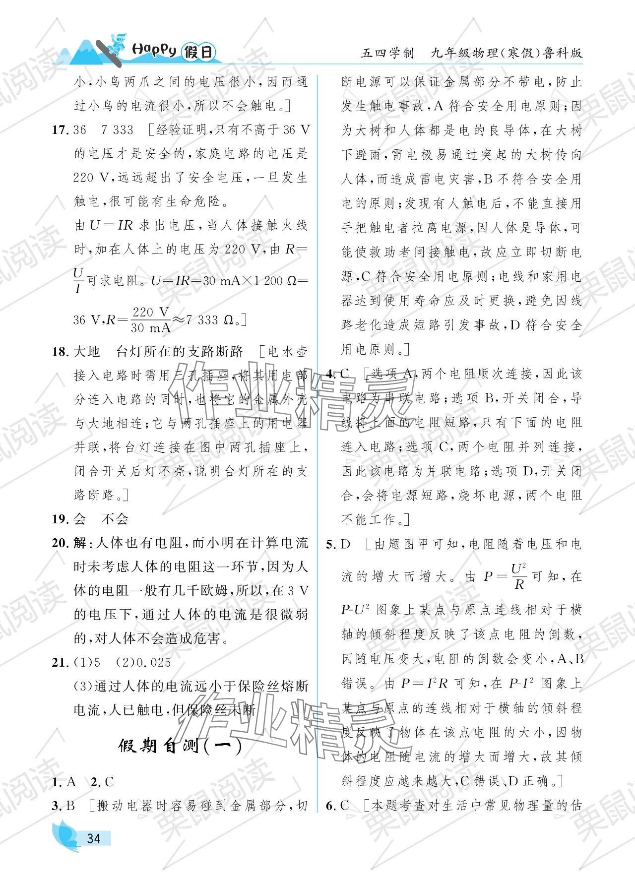 2024年寒假Happy假日九年级物理鲁科版五四制