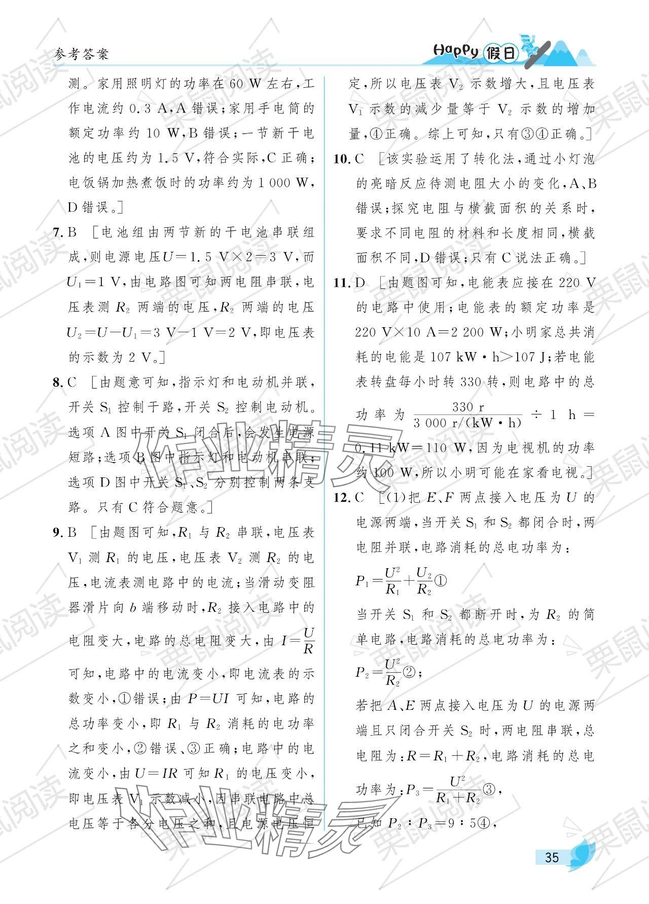 2024年寒假Happy假日九年级物理鲁科版五四制