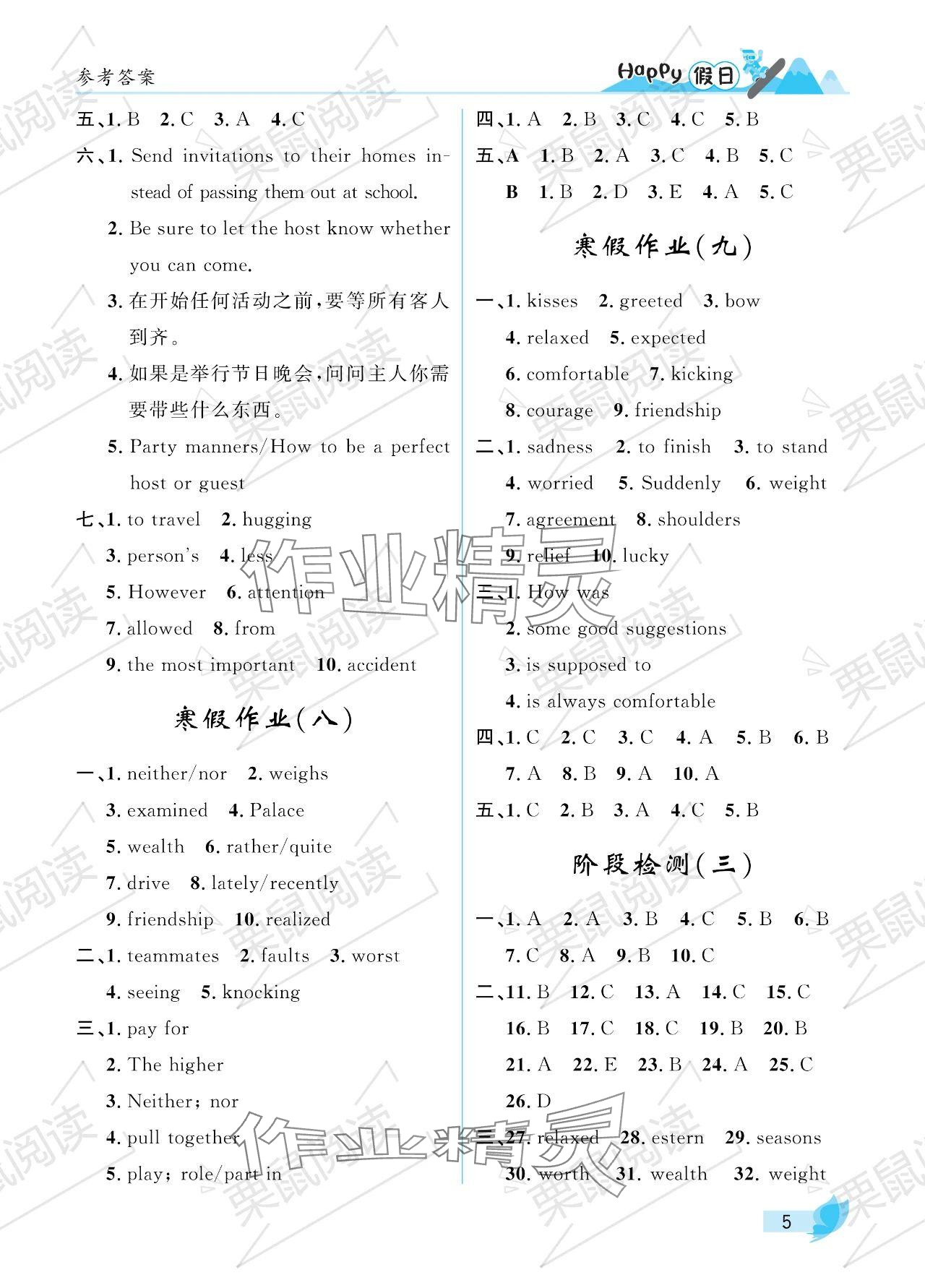 2024年寒假Happy假日九年级英语鲁教版五四制