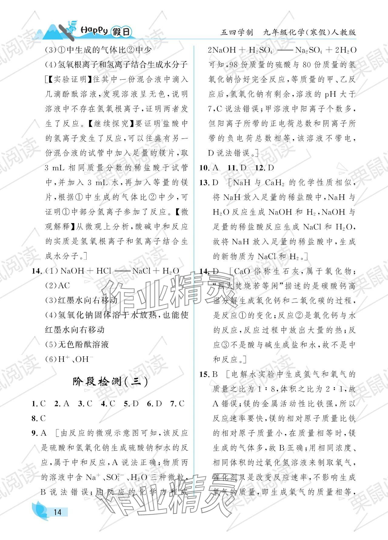 2024年寒假Happy假日九年级化学人教版五四制