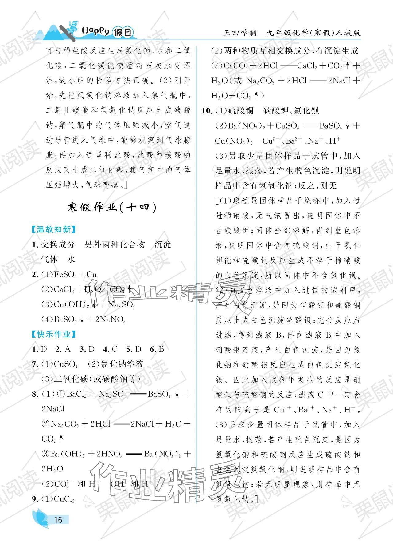 2024年寒假Happy假日九年级化学人教版五四制