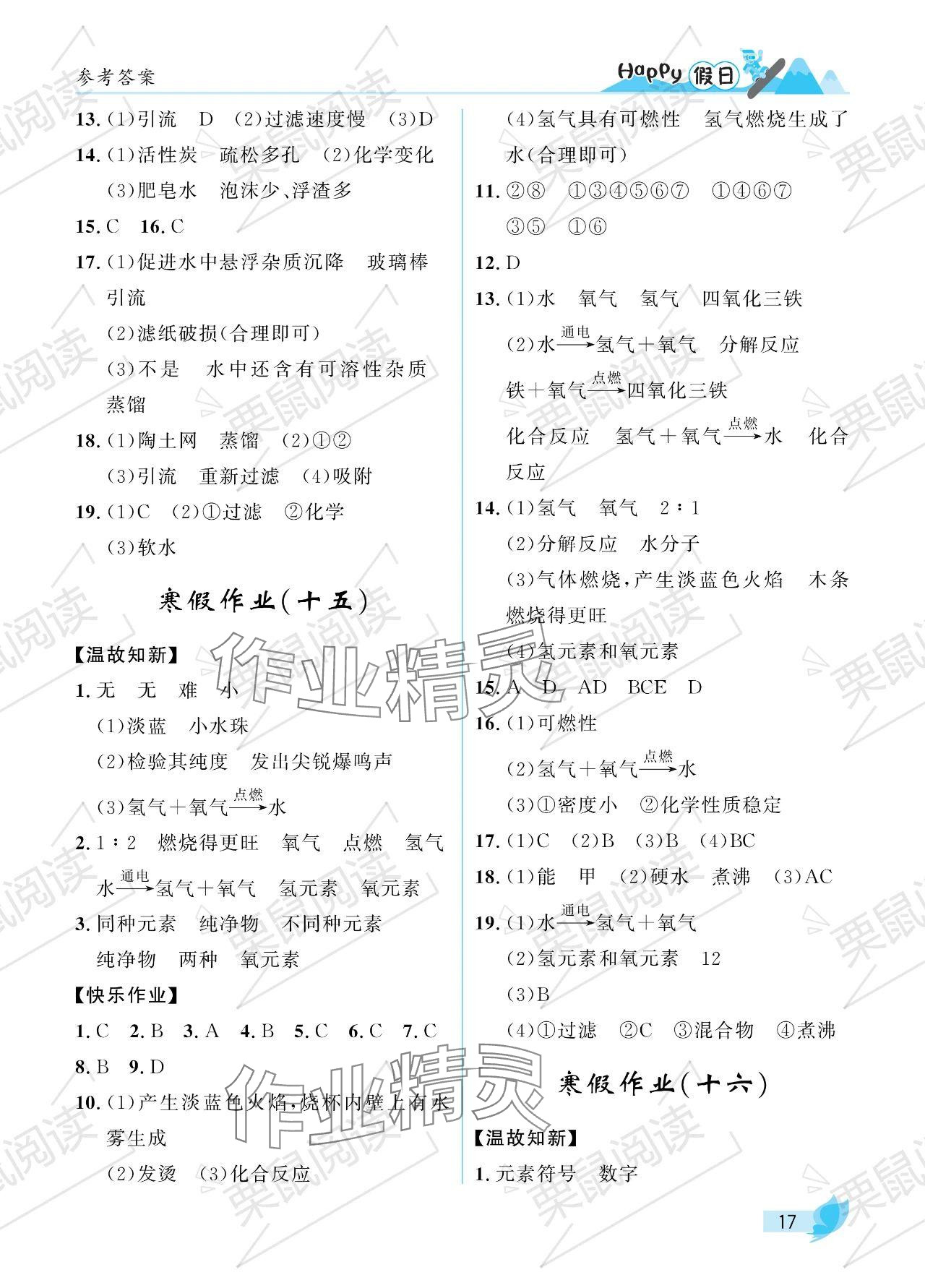 2024年寒假Happy假日八年级化学人教版五四制