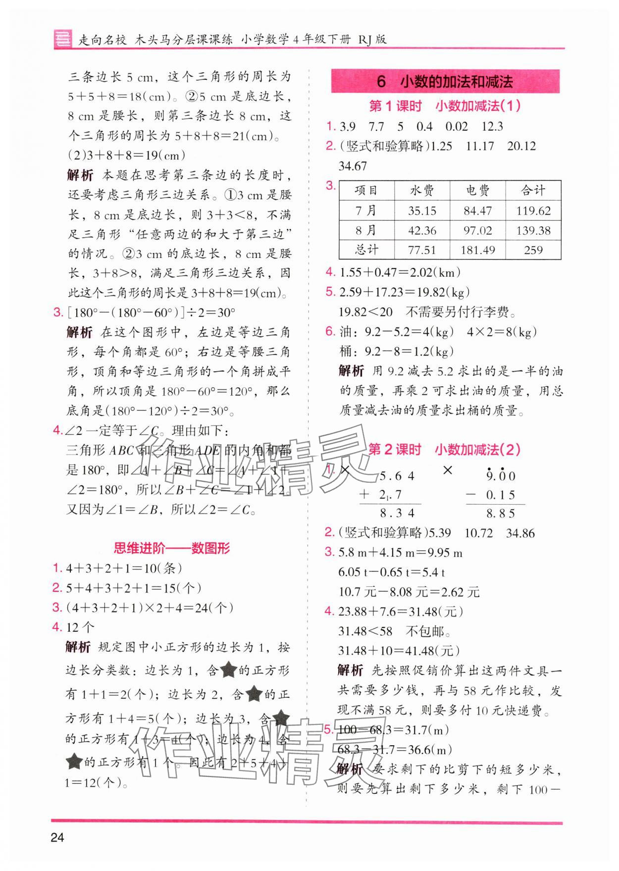 注:目前有些书本章节名称可能整理的还不是很完善,但都是按照顺序排列的,请同学们按照顺序仔细查找。练习册 2024年木头马分层课课练四年级数学下册人教版 答案主要是用来给同学们做完题方便对答案用的,请勿直接抄袭。