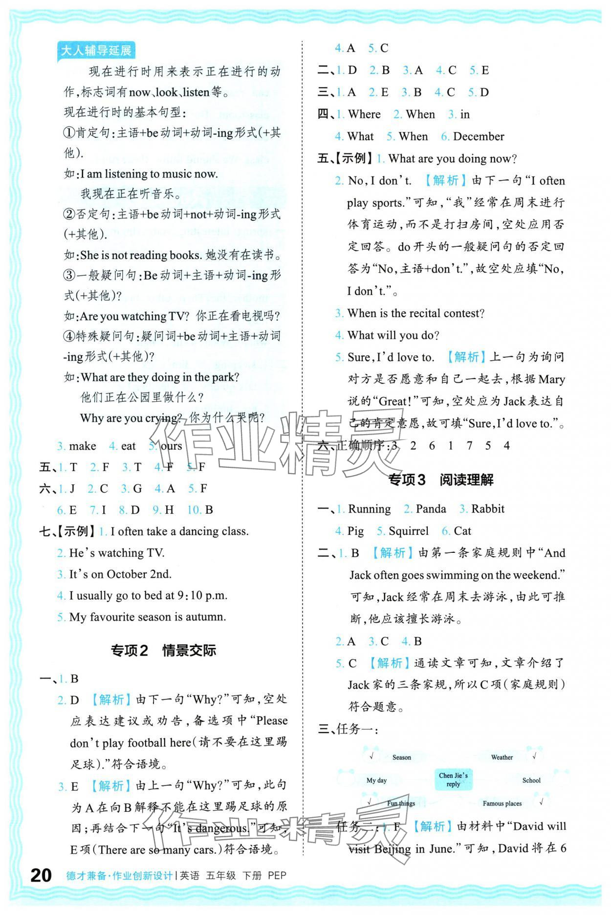 注:目前有些书本章节名称可能整理的还不是很完善,但都是按照顺序排列的,请同学们按照顺序仔细查找。练习册 2024年王朝霞德才兼备作业创新设计五年级英语下册人教版 答案主要是用来给同学们做完题方便对答案用的,请勿直接抄袭。