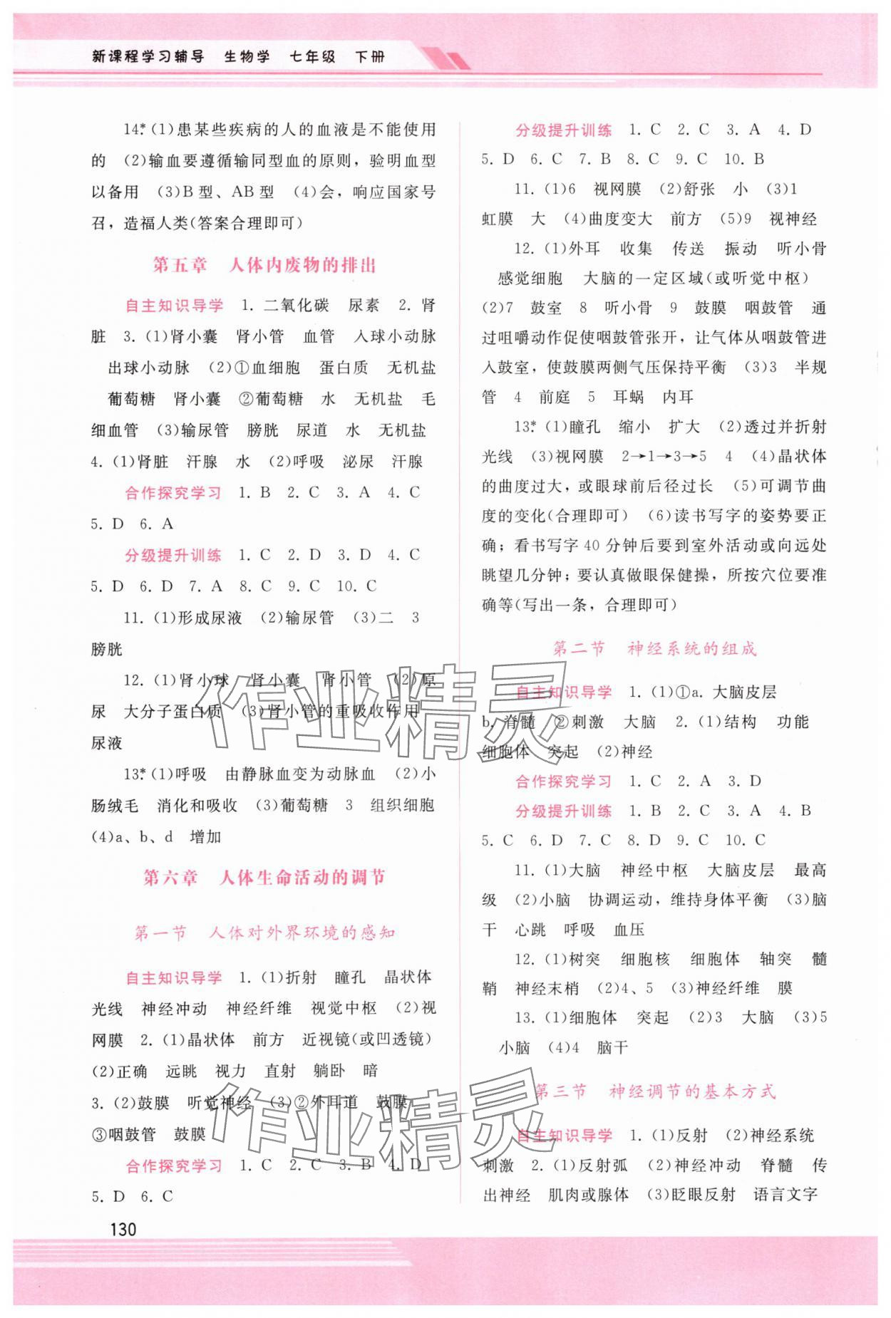 注:目前有些书本章节名称可能整理的还不是很完善,但都是按照顺序排列的,请同学们按照顺序仔细查找。练习册 2024年新课程学习辅导七年级生物下册人教版 答案主要是用来给同学们做完题方便对答案用的,请勿直接抄袭。