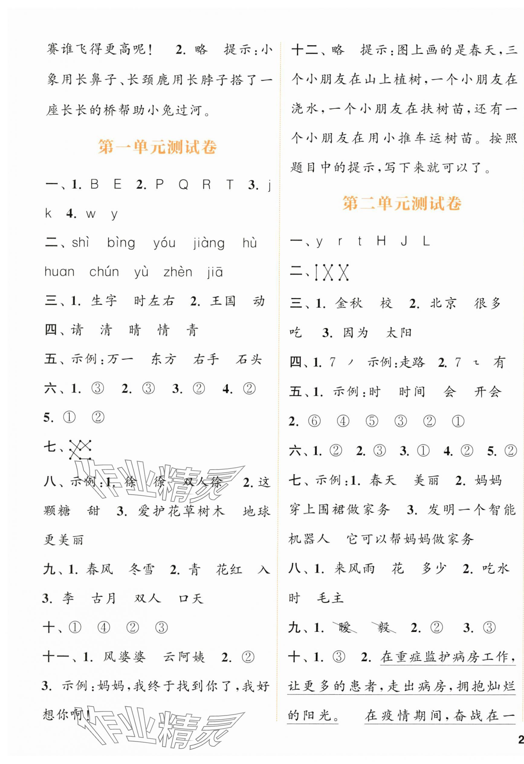 注:目前有些书本章节名称可能整理的还不是很完善,但都是按照顺序排列的,请同学们按照顺序仔细查找。练习册 2024年通城学典课时作业本一年级语文下册人教版浙江专版 答案主要是用来给同学们做完题方便对答案用的,请勿直接抄袭。