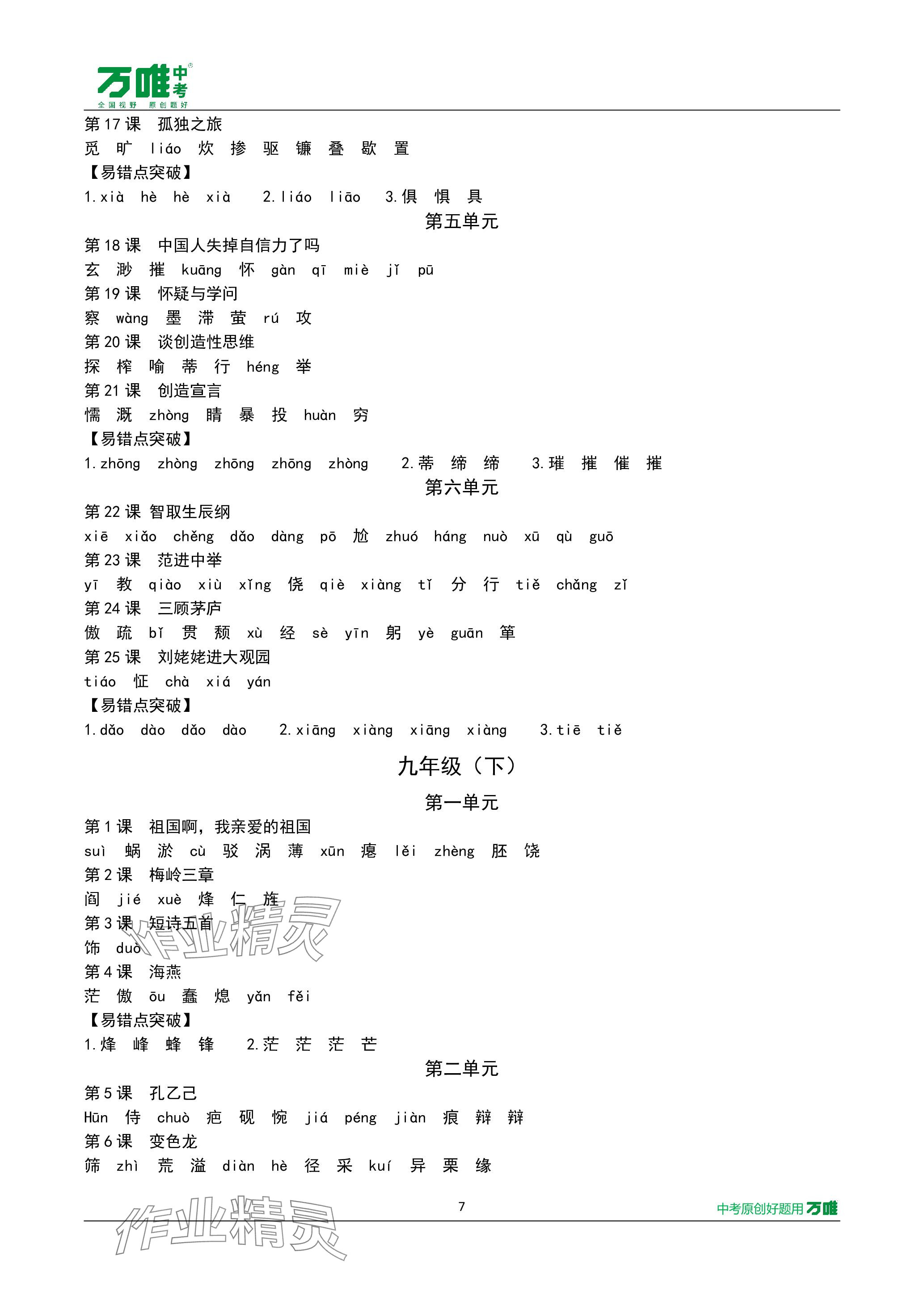 注:目前有些书本章节名称可能整理的还不是很完善,但都是按照顺序排列的,请同学们按照顺序仔细查找。练习册 2024年万唯中考试题研究语文长沙专版 答案主要是用来给同学们做完题方便对答案用的,请勿直接抄袭。