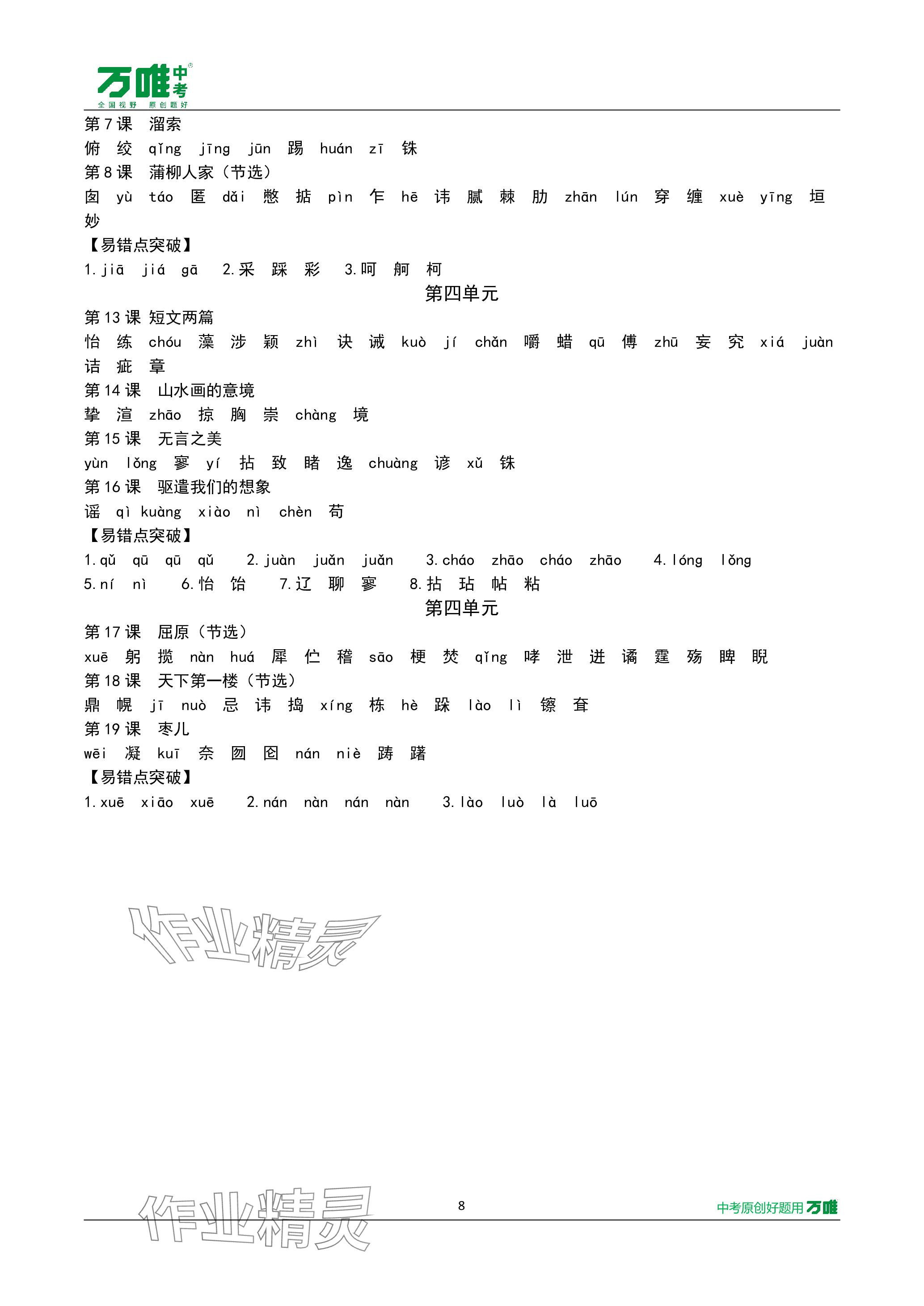 注:目前有些书本章节名称可能整理的还不是很完善,但都是按照顺序排列的,请同学们按照顺序仔细查找。练习册 2024年万唯中考试题研究语文长沙专版 答案主要是用来给同学们做完题方便对答案用的,请勿直接抄袭。