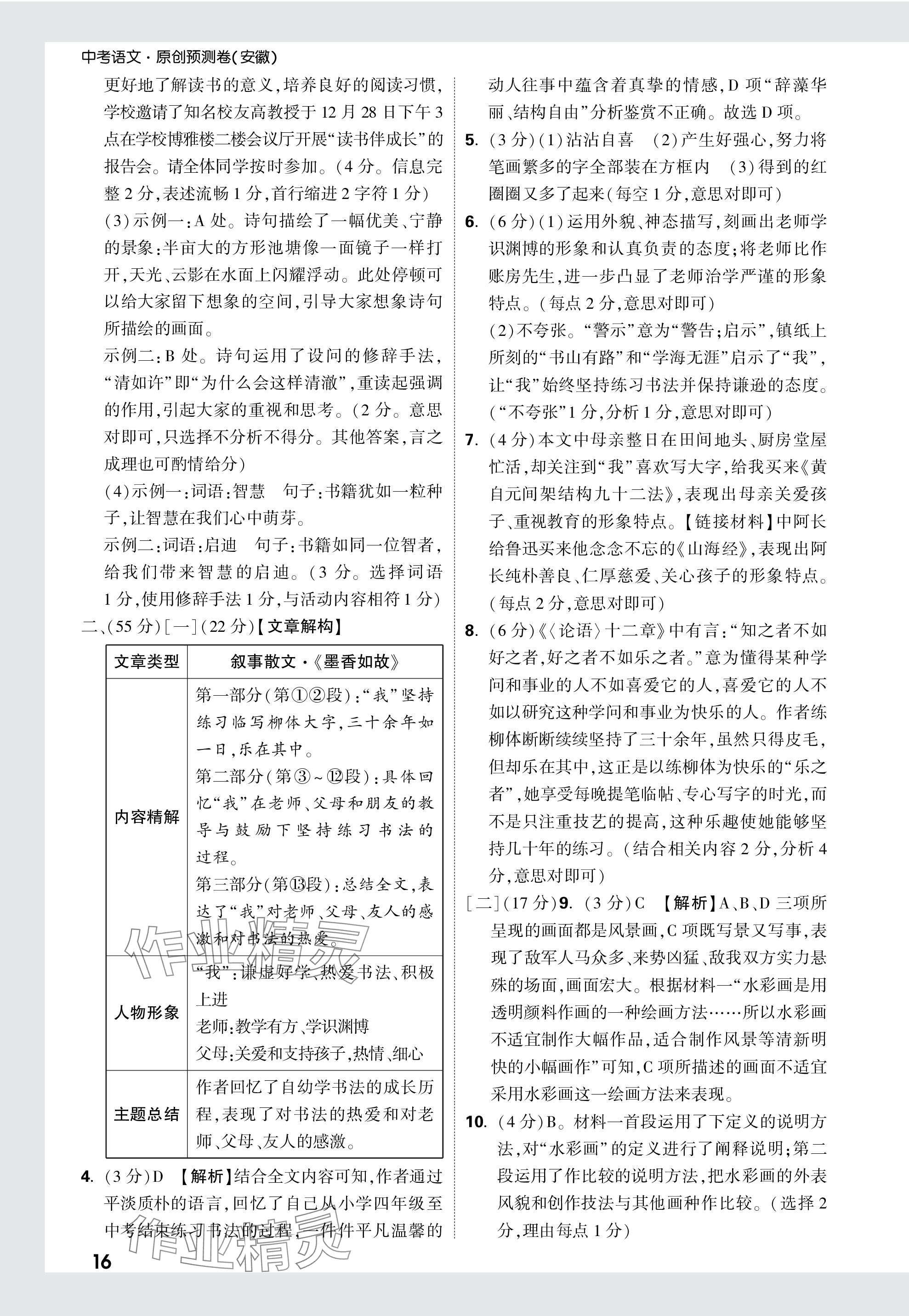 2024年万唯中考原创预测卷语文安徽专版