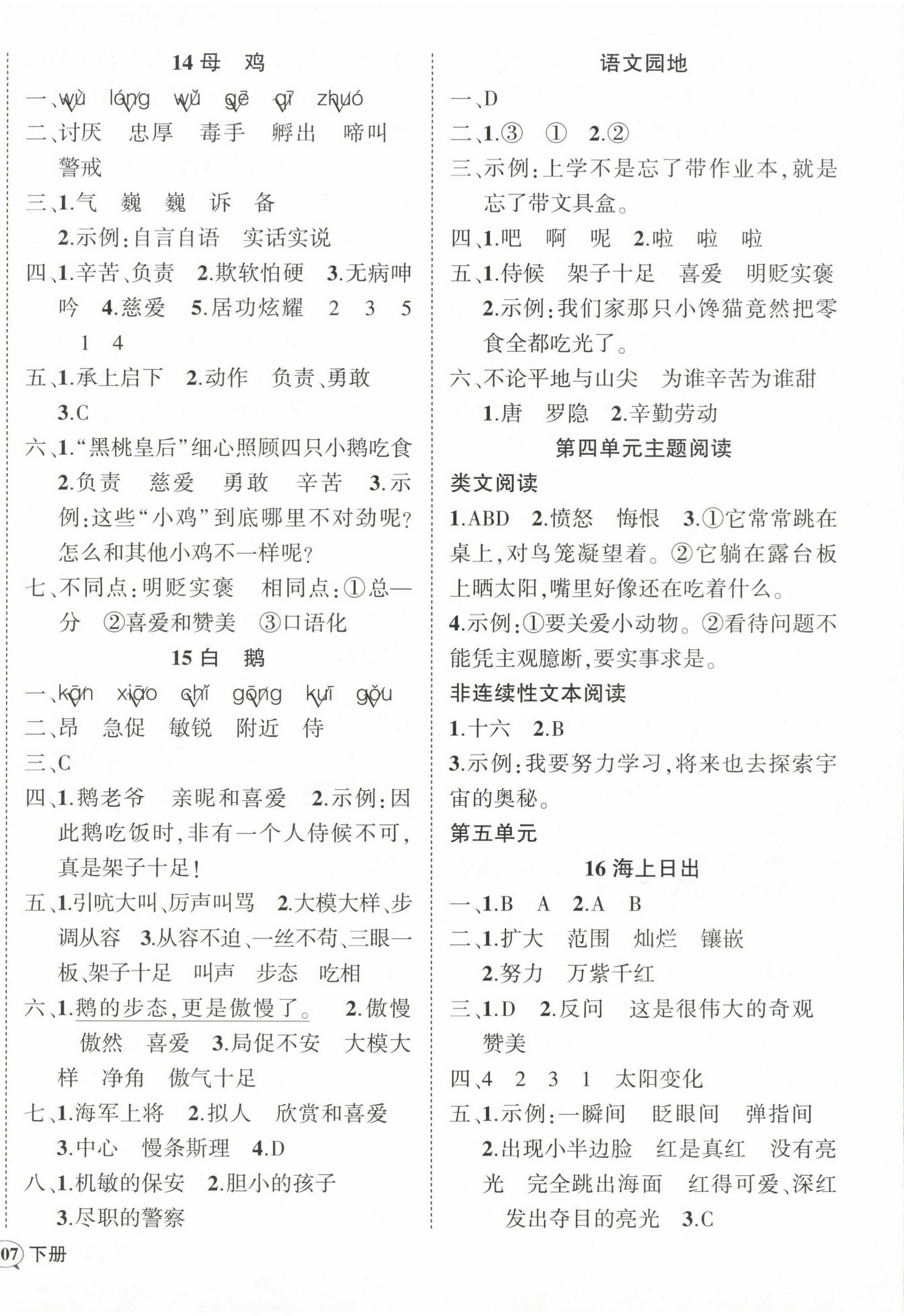 注:目前有些书本章节名称可能整理的还不是很完善,但都是按照顺序排列的,请同学们按照顺序仔细查找。练习册 2024年状元成才路创优作业100分四年级语文下册人教版 答案主要是用来给同学们做完题方便对答案用的,请勿直接抄袭。