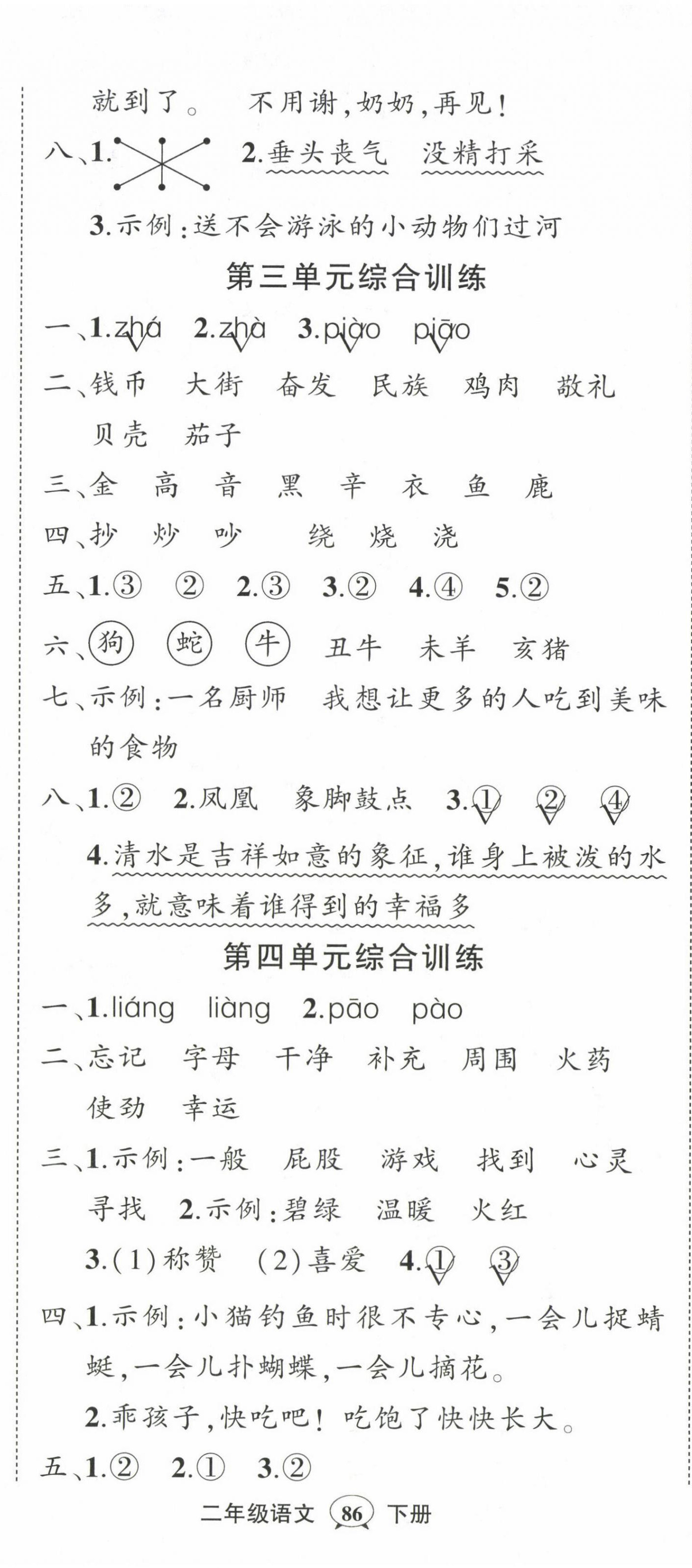 注:目前有些书本章节名称可能整理的还不是很完善,但都是按照顺序排列的,请同学们按照顺序仔细查找。练习册 2024年状元成才路创优作业100分二年级语文下册人教版 答案主要是用来给同学们做完题方便对答案用的,请勿直接抄袭。