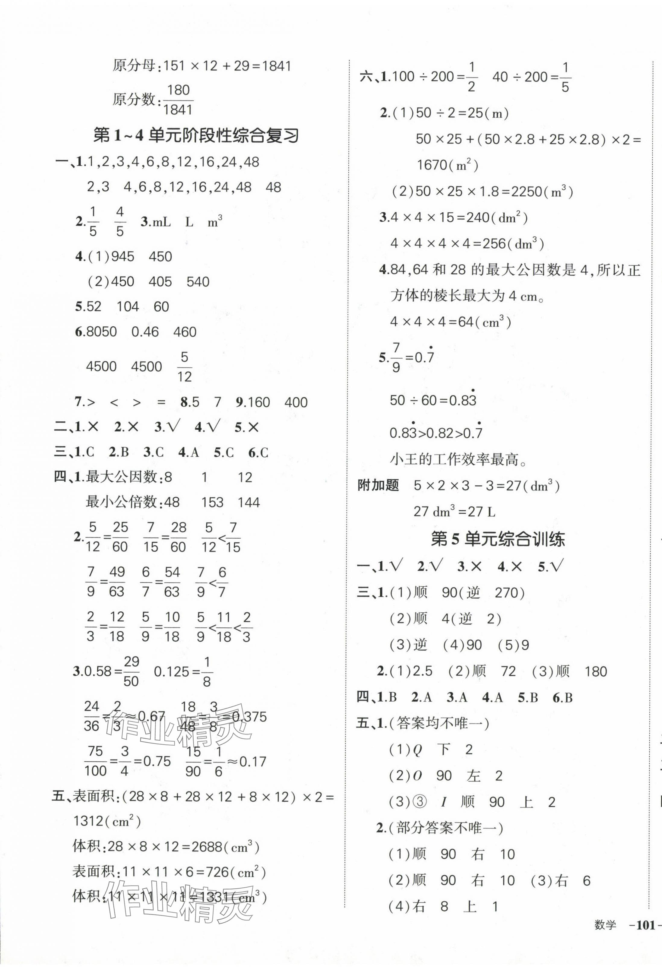 注:目前有些书本章节名称可能整理的还不是很完善,但都是按照顺序排列的,请同学们按照顺序仔细查找。练习册 2024年状元成才路创优作业100分五年级数学下册人教版 答案主要是用来给同学们做完题方便对答案用的,请勿直接抄袭。