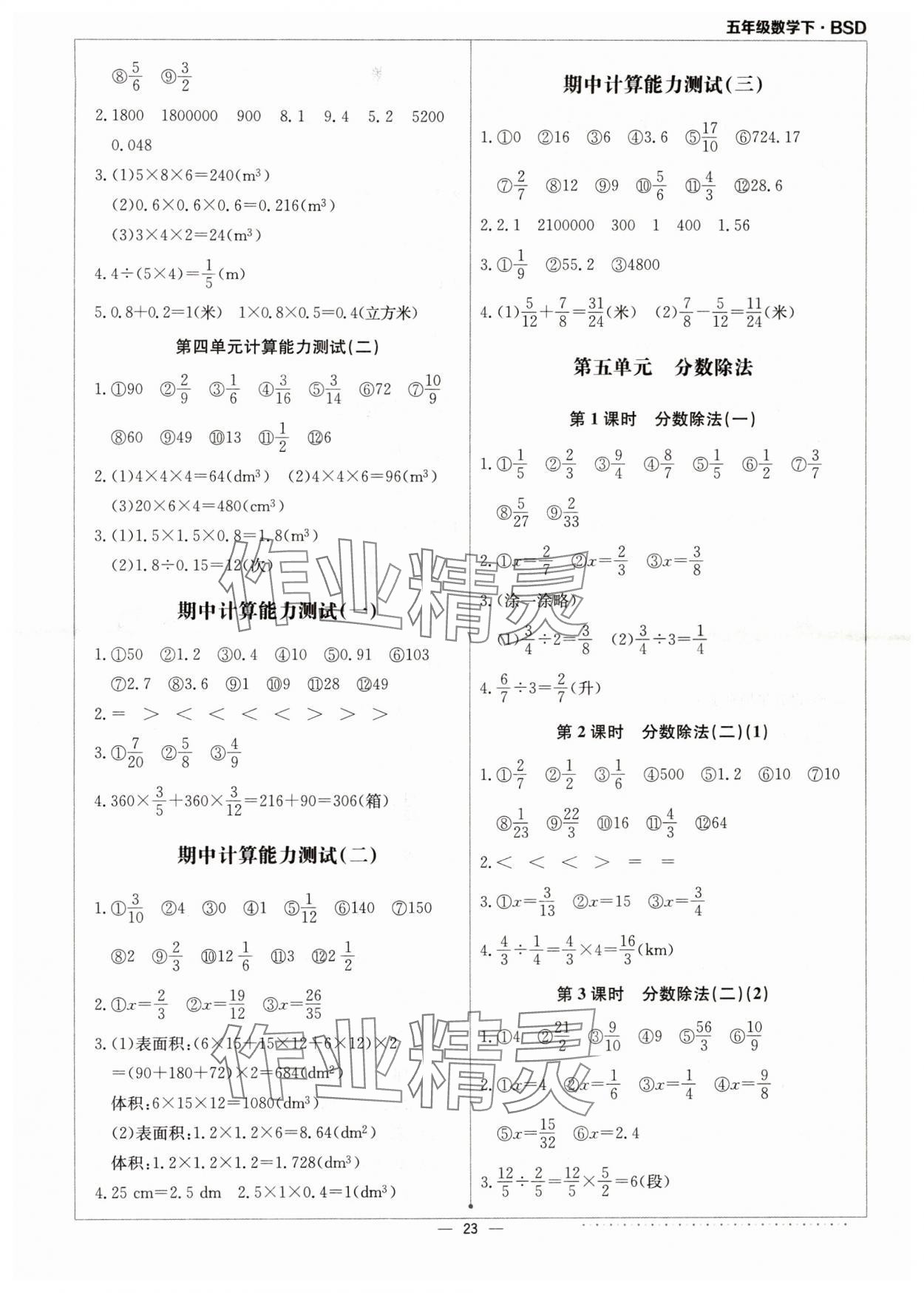 注:目前有些书本章节名称可能整理的还不是很完善,但都是按照顺序排列的,请同学们按照顺序仔细查找。练习册 2024年本真图书计算小达人五年级数学下册北师大版 答案主要是用来给同学们做完题方便对答案用的,请勿直接抄袭。