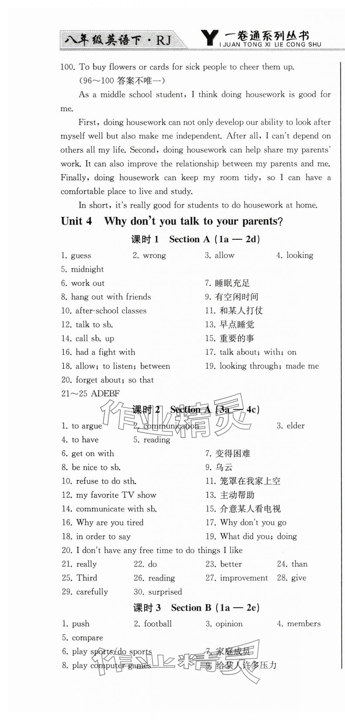注:目前有些书本章节名称可能整理的还不是很完善,但都是按照顺序排列的,请同学们按照顺序仔细查找。练习册 2024年同步优化测试卷一卷通八年级英语下册人教版 答案主要是用来给同学们做完题方便对答案用的,请勿直接抄袭。