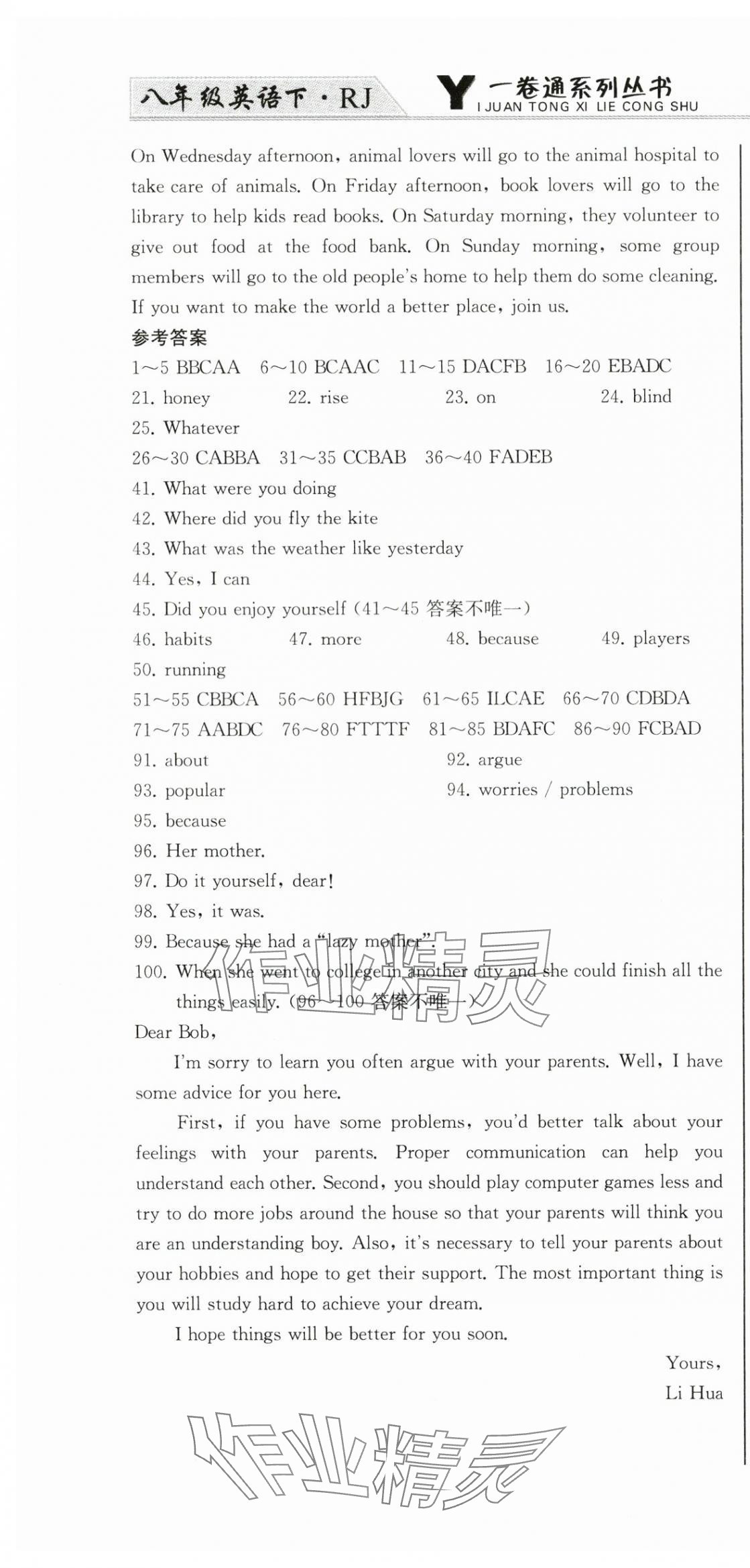 注:目前有些书本章节名称可能整理的还不是很完善,但都是按照顺序排列的,请同学们按照顺序仔细查找。练习册 2024年同步优化测试卷一卷通八年级英语下册人教版 答案主要是用来给同学们做完题方便对答案用的,请勿直接抄袭。