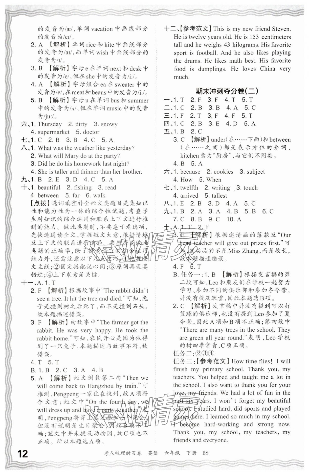 2024年王朝霞考点梳理时习卷六年级英语下册北师大版