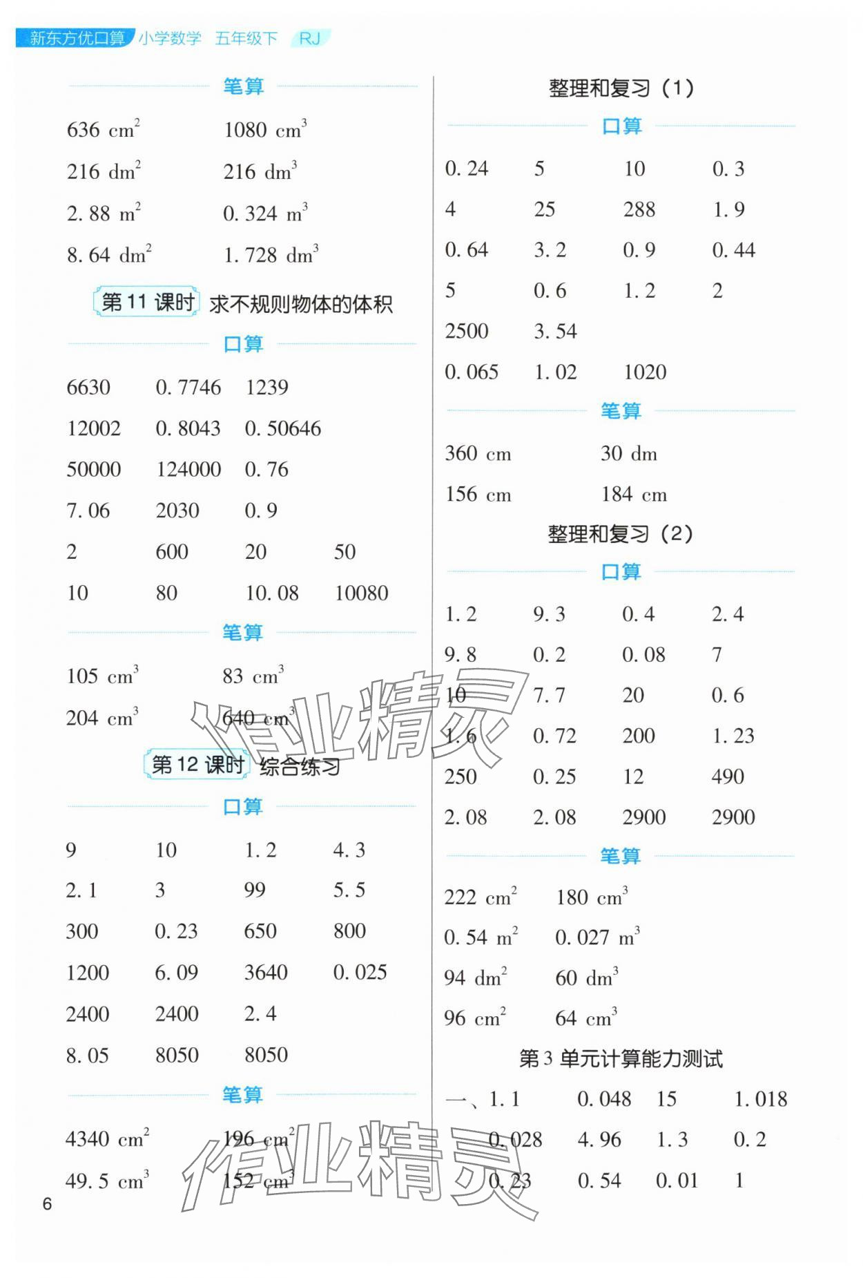 注:目前有些书本章节名称可能整理的还不是很完善,但都是按照顺序排列的,请同学们按照顺序仔细查找。练习册 2024年新东方优口算五年级数学下册人教版 答案主要是用来给同学们做完题方便对答案用的,请勿直接抄袭。
