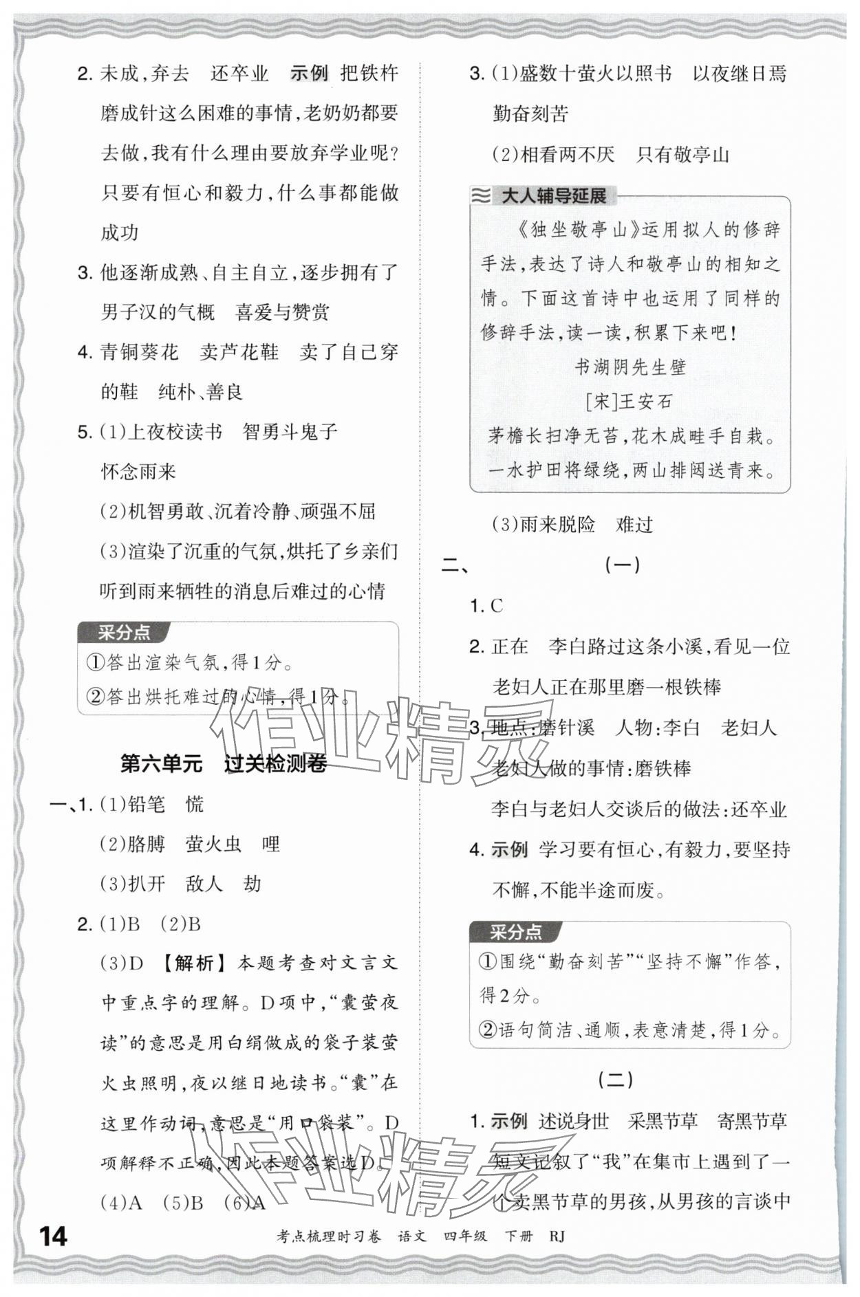 2024年王朝霞考点梳理时习卷四年级语文下册人教版