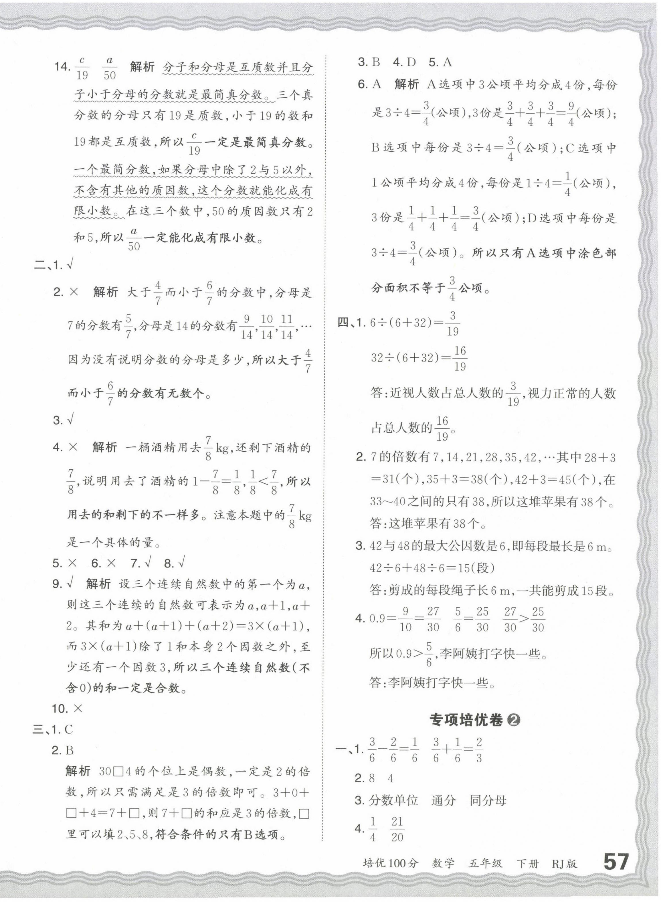 注:目前有些书本章节名称可能整理的还不是很完善,但都是按照顺序排列的,请同学们按照顺序仔细查找。练习册 2024年王朝霞培优100分五年级数学下册人教版 答案主要是用来给同学们做完题方便对答案用的,请勿直接抄袭。