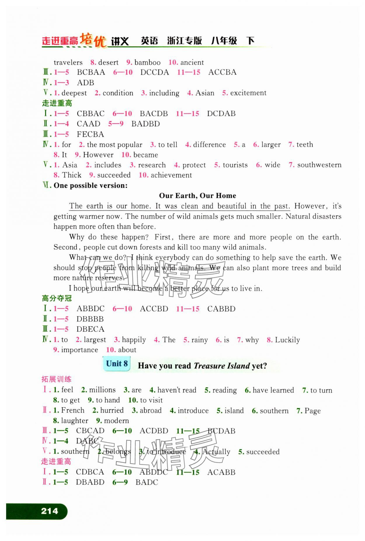 注:目前有些书本章节名称可能整理的还不是很完善,但都是按照顺序排列的,请同学们按照顺序仔细查找。练习册 2024年走进重高培优讲义八年级英语下册人教版浙江专版 答案主要是用来给同学们做完题方便对答案用的,请勿直接抄袭。