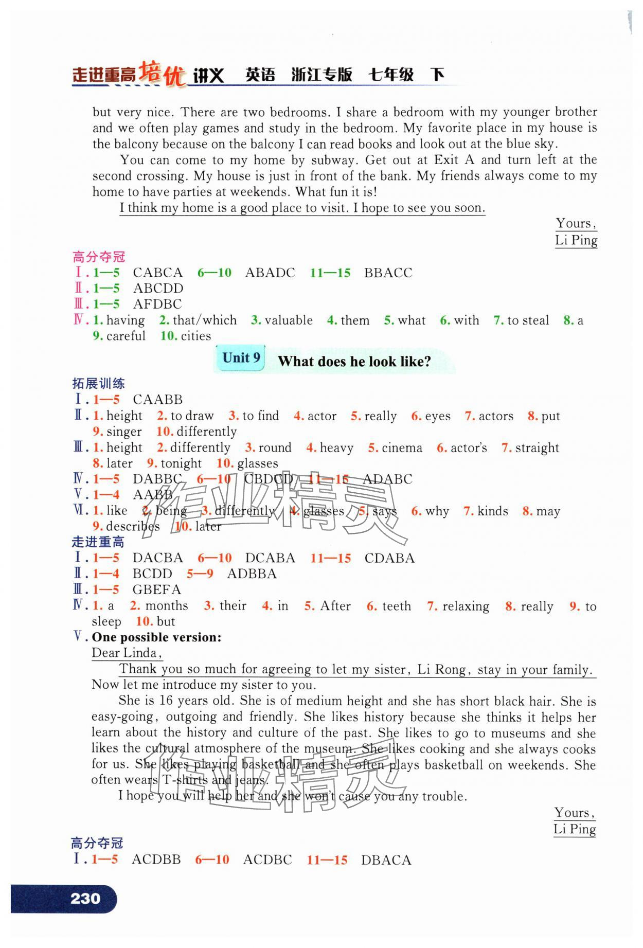 注:目前有些书本章节名称可能整理的还不是很完善,但都是按照顺序排列的,请同学们按照顺序仔细查找。练习册 2024年走进重高培优讲义七年级英语下册人教版浙江专版 答案主要是用来给同学们做完题方便对答案用的,请勿直接抄袭。