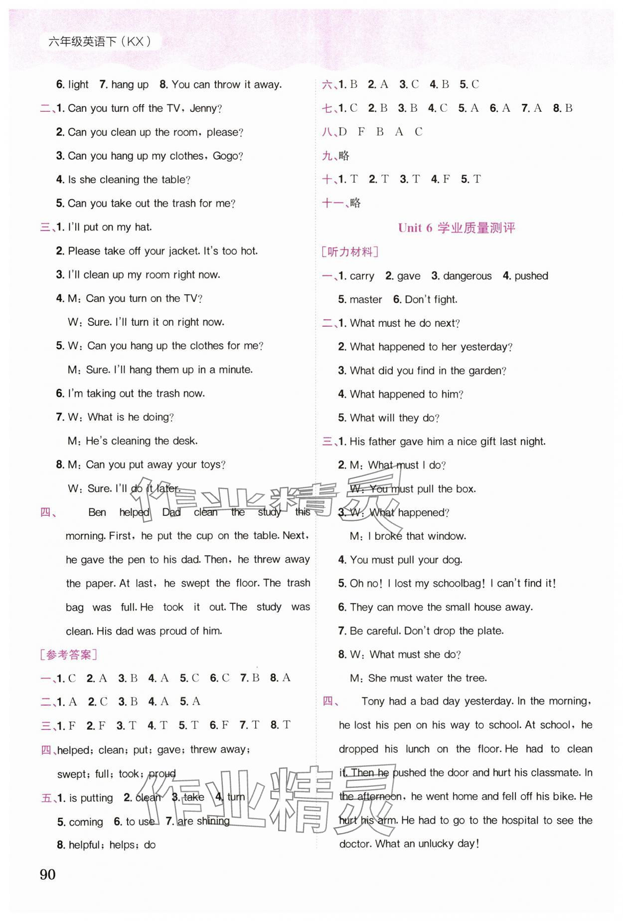 注:目前有些书本章节名称可能整理的还不是很完善,但都是按照顺序排列的,请同学们按照顺序仔细查找。练习册 2024年黄冈小状元作业本六年级英语下册开心版 答案主要是用来给同学们做完题方便对答案用的,请勿直接抄袭。
