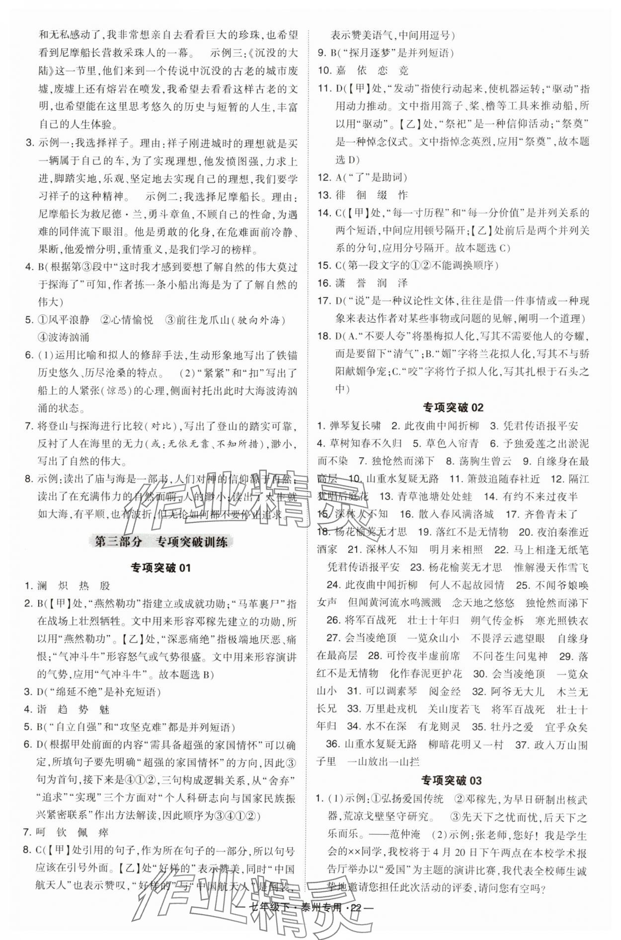 注:目前有些书本章节名称可能整理的还不是很完善,但都是按照顺序排列的,请同学们按照顺序仔细查找。练习册 2024年学霸组合训练七年级语文下册人教版泰州专用 答案主要是用来给同学们做完题方便对答案用的,请勿直接抄袭。