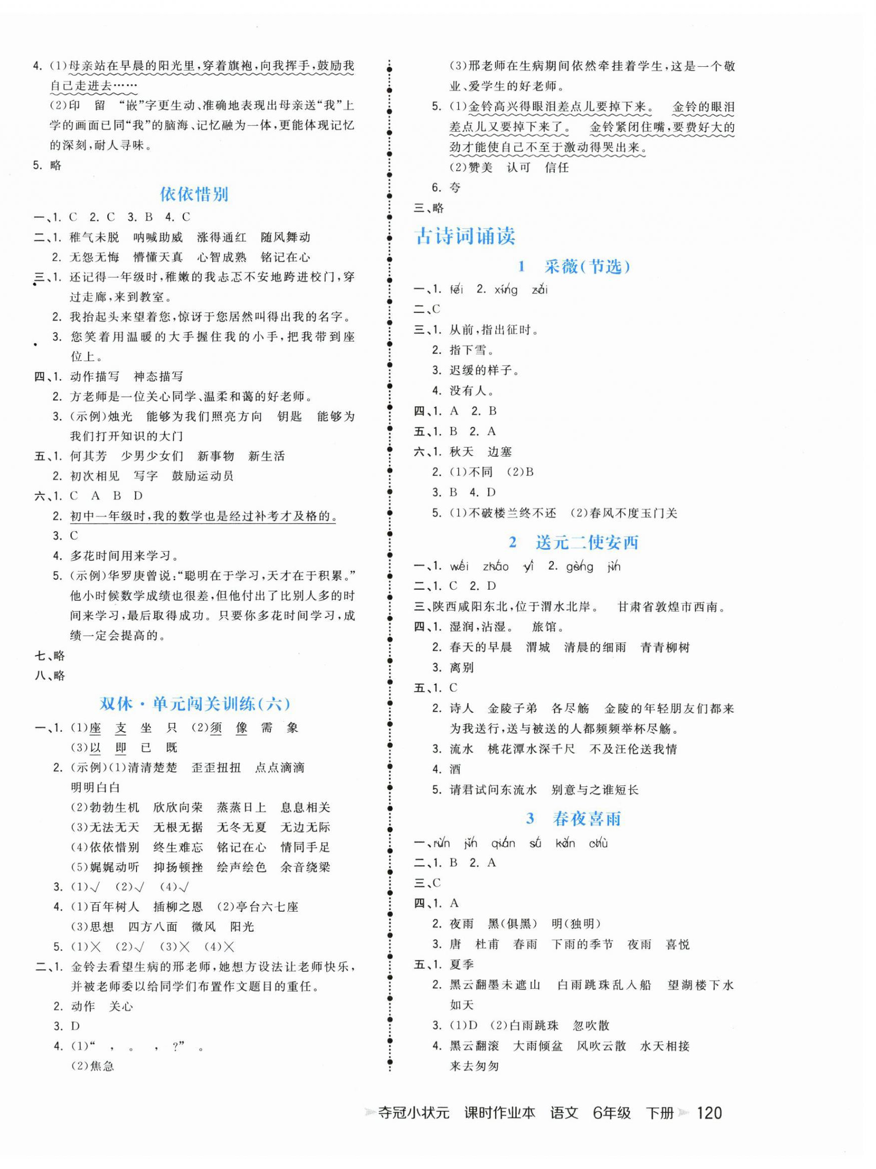 注:目前有些书本章节名称可能整理的还不是很完善,但都是按照顺序排列的,请同学们按照顺序仔细查找。练习册 2024年夺冠小状元课时作业本六年级语文下册人教版 答案主要是用来给同学们做完题方便对答案用的,请勿直接抄袭。