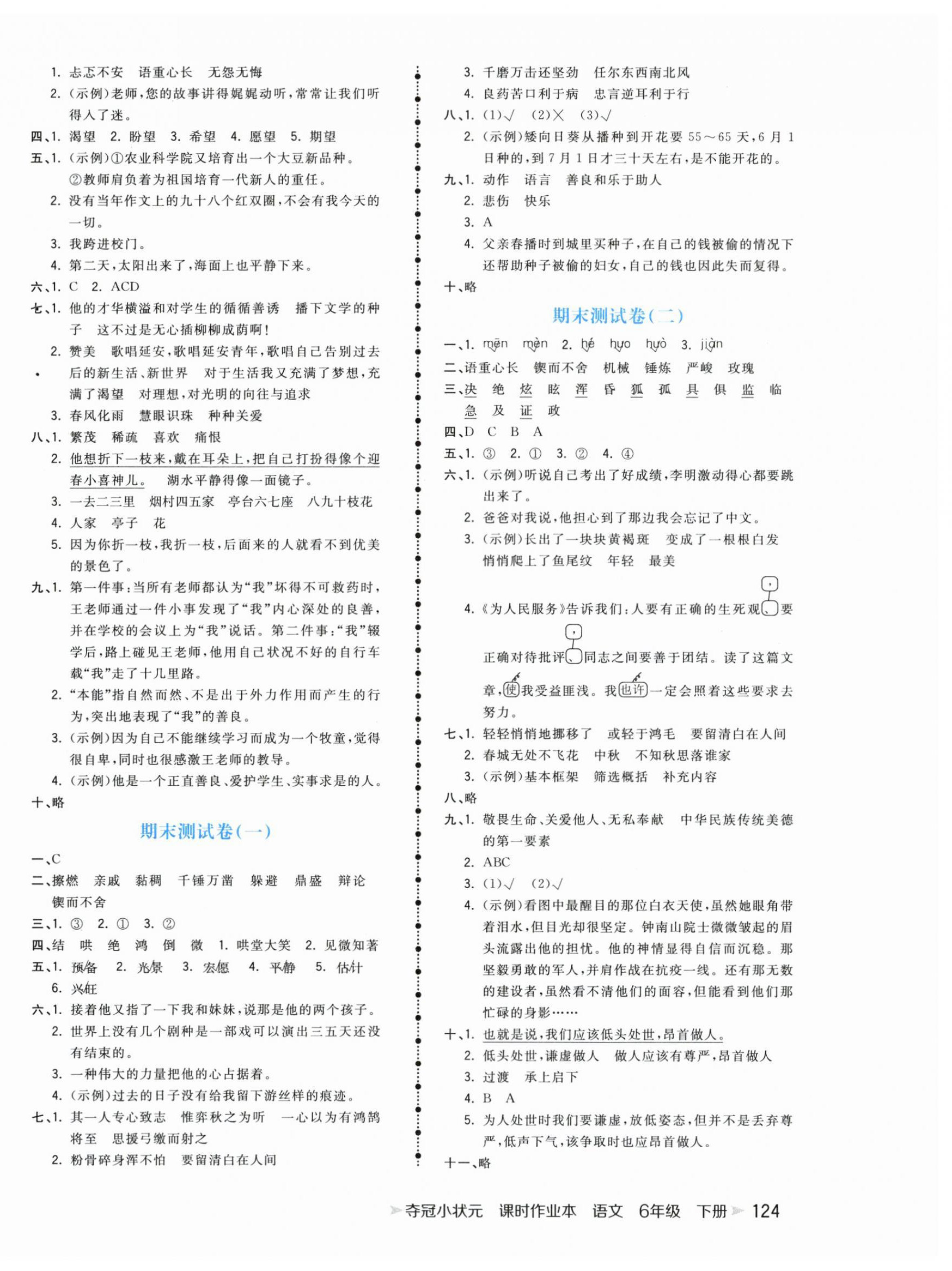注:目前有些书本章节名称可能整理的还不是很完善,但都是按照顺序排列的,请同学们按照顺序仔细查找。练习册 2024年夺冠小状元课时作业本六年级语文下册人教版 答案主要是用来给同学们做完题方便对答案用的,请勿直接抄袭。