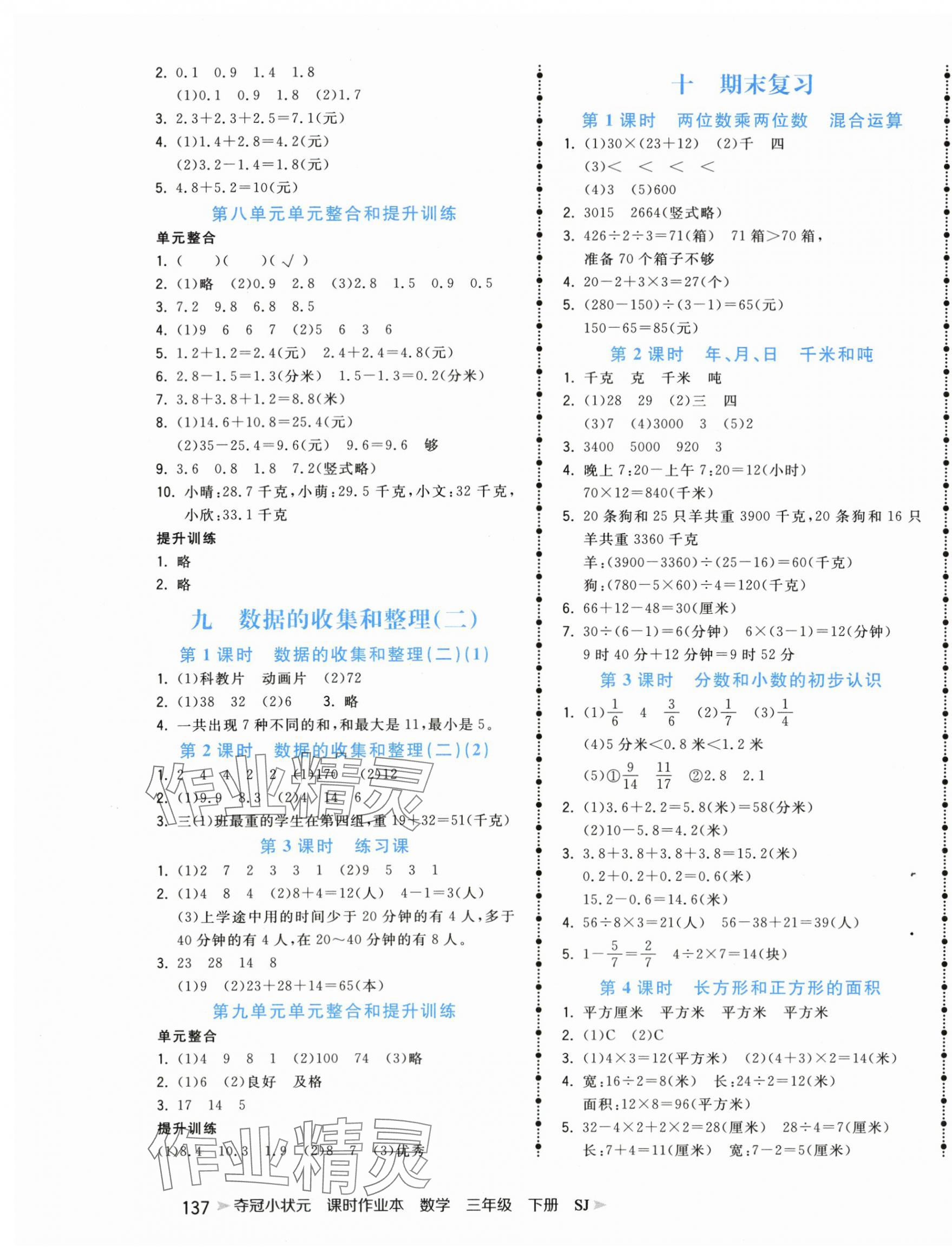 注:目前有些书本章节名称可能整理的还不是很完善,但都是按照顺序排列的,请同学们按照顺序仔细查找。练习册 2024年夺冠小状元课时作业本三年级数学下册苏教版 答案主要是用来给同学们做完题方便对答案用的,请勿直接抄袭。