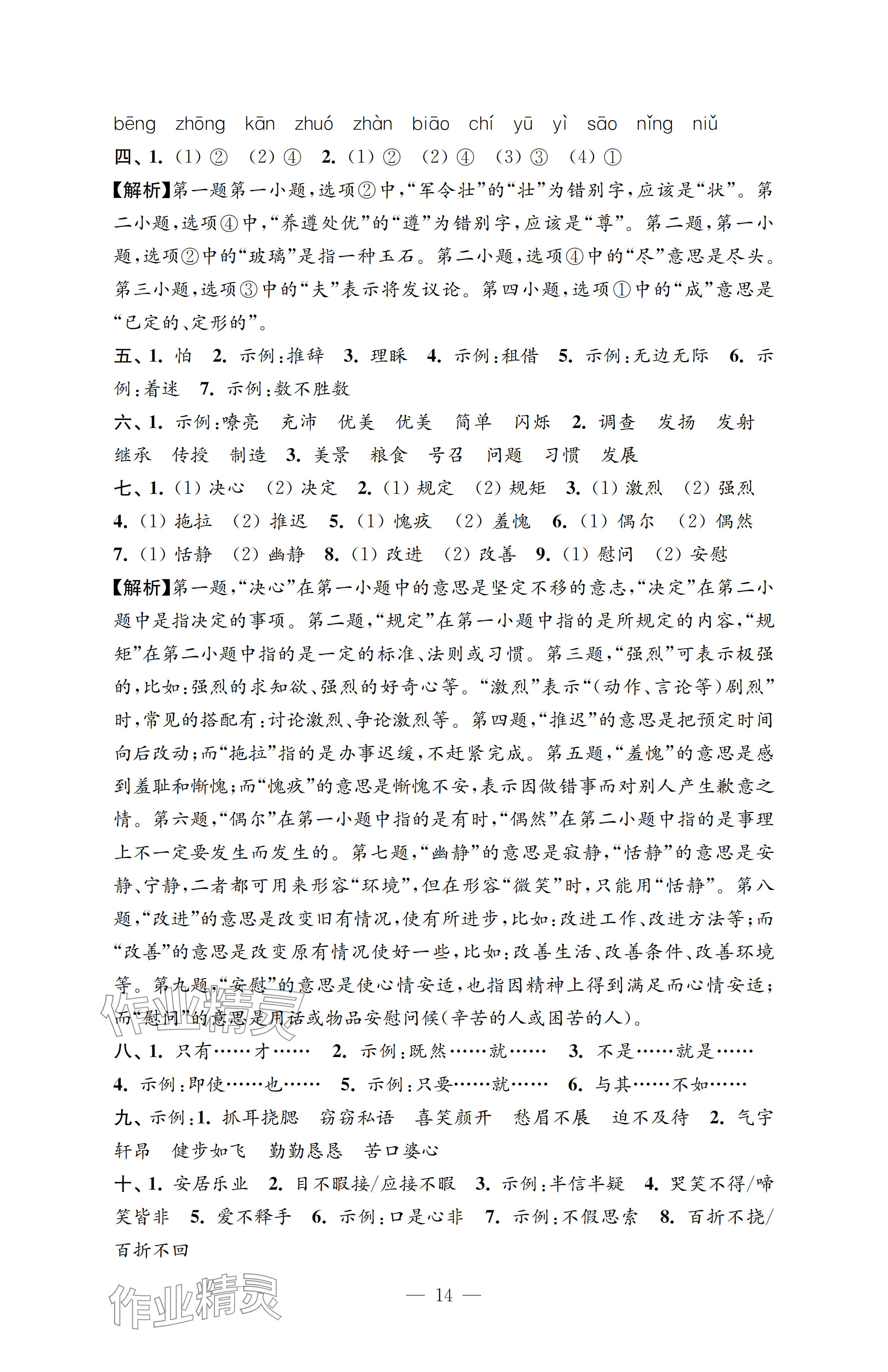 注:目前有些书本章节名称可能整理的还不是很完善,但都是按照顺序排列的,请同学们按照顺序仔细查找。练习册 2024年强化拓展卷五年级语文下册人教版提升版 答案主要是用来给同学们做完题方便对答案用的,请勿直接抄袭。