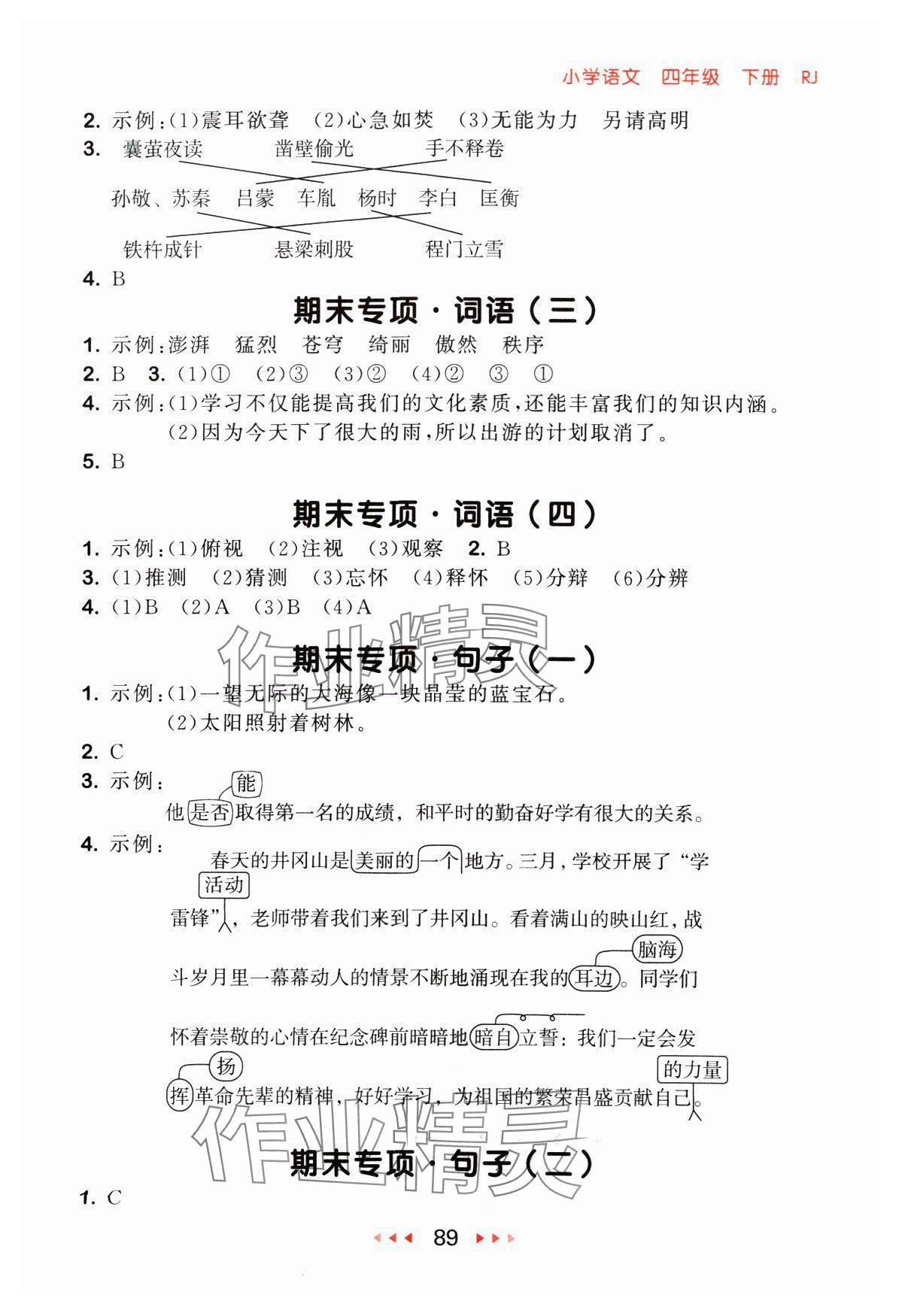 注:目前有些书本章节名称可能整理的还不是很完善,但都是按照顺序排列的,请同学们按照顺序仔细查找。练习册 2024年53随堂测四年级语文下册人教版 答案主要是用来给同学们做完题方便对答案用的,请勿直接抄袭。