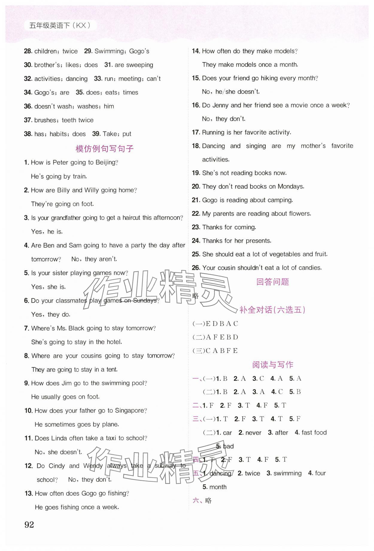注:目前有些书本章节名称可能整理的还不是很完善,但都是按照顺序排列的,请同学们按照顺序仔细查找。练习册 2024年黄冈小状元作业本五年级英语下册开心版 答案主要是用来给同学们做完题方便对答案用的,请勿直接抄袭。