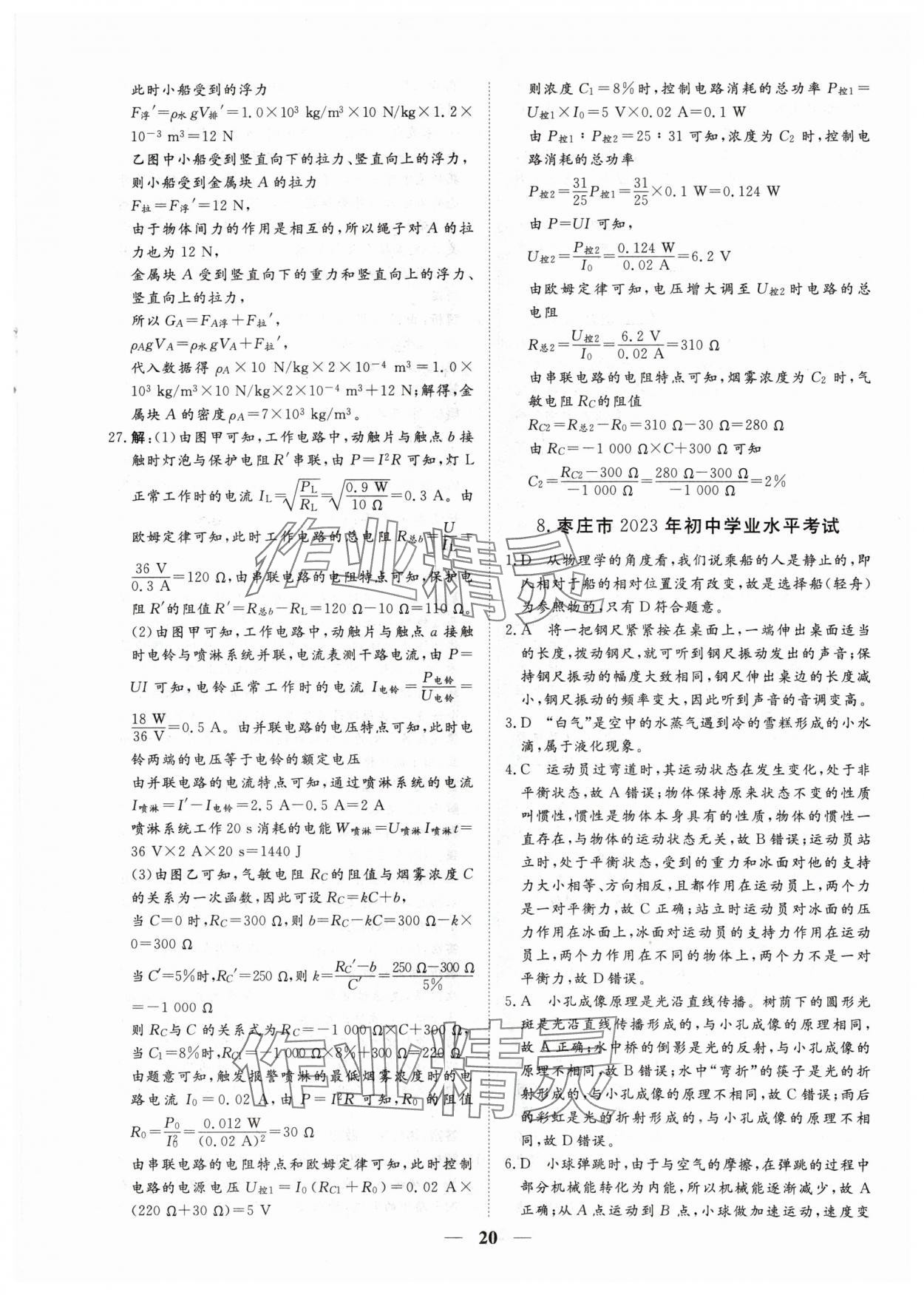 注:目前有些书本章节名称可能整理的还不是很完善,但都是按照顺序排列的,请同学们按照顺序仔细查找。练习册 2024年风向标初中学业水平测试山东省各地市中考试题汇编物理 答案主要是用来给同学们做完题方便对答案用的,请勿直接抄袭。