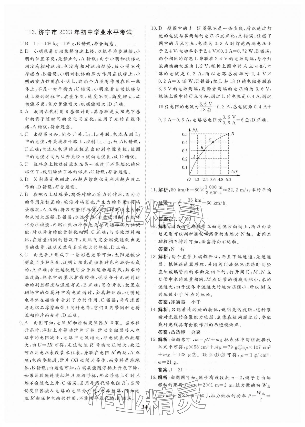 注:目前有些书本章节名称可能整理的还不是很完善,但都是按照顺序排列的,请同学们按照顺序仔细查找。练习册 2024年风向标初中学业水平测试山东省各地市中考试题汇编物理 答案主要是用来给同学们做完题方便对答案用的,请勿直接抄袭。