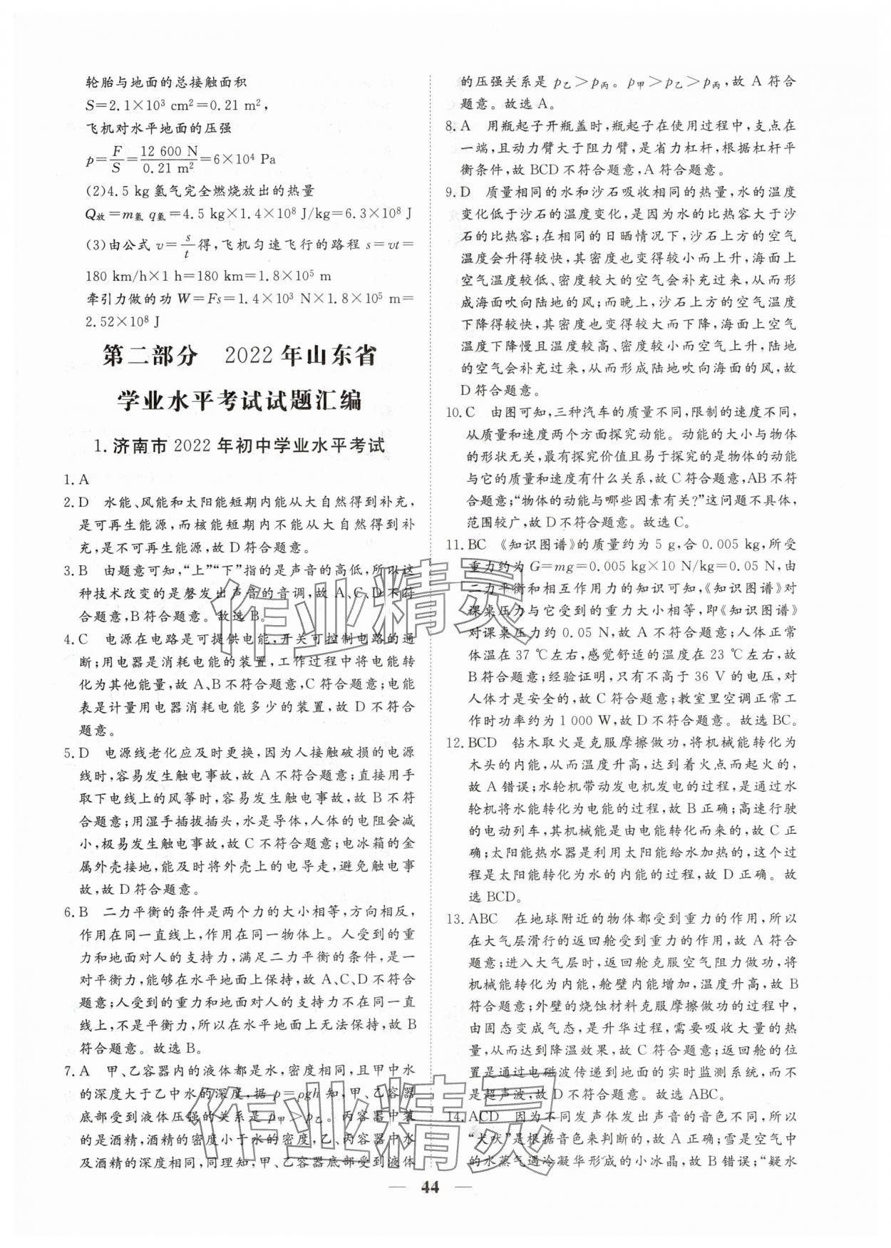 2024年风向标初中学业水平测试山东省各地市中考试题汇编物理