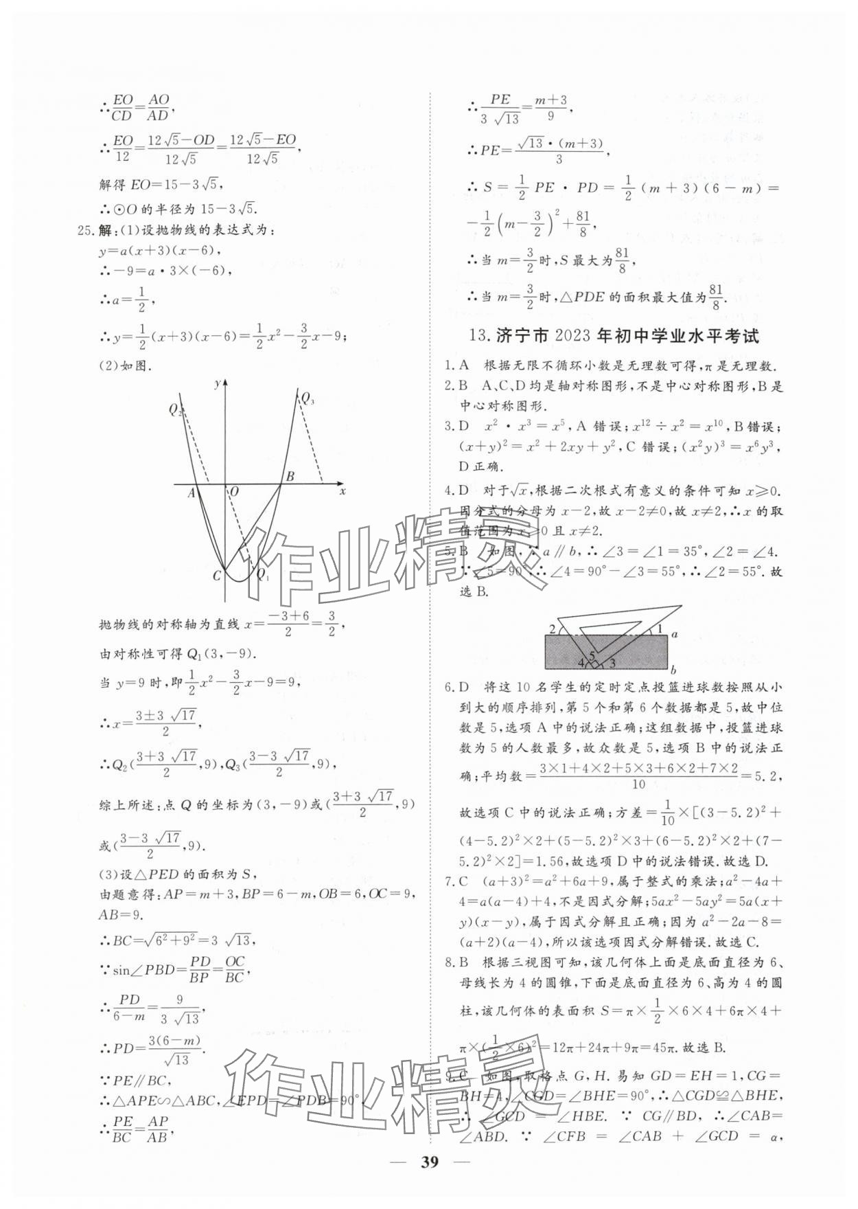 2024年风向标初中学业水平测试山东省各地市中考试题汇编数学