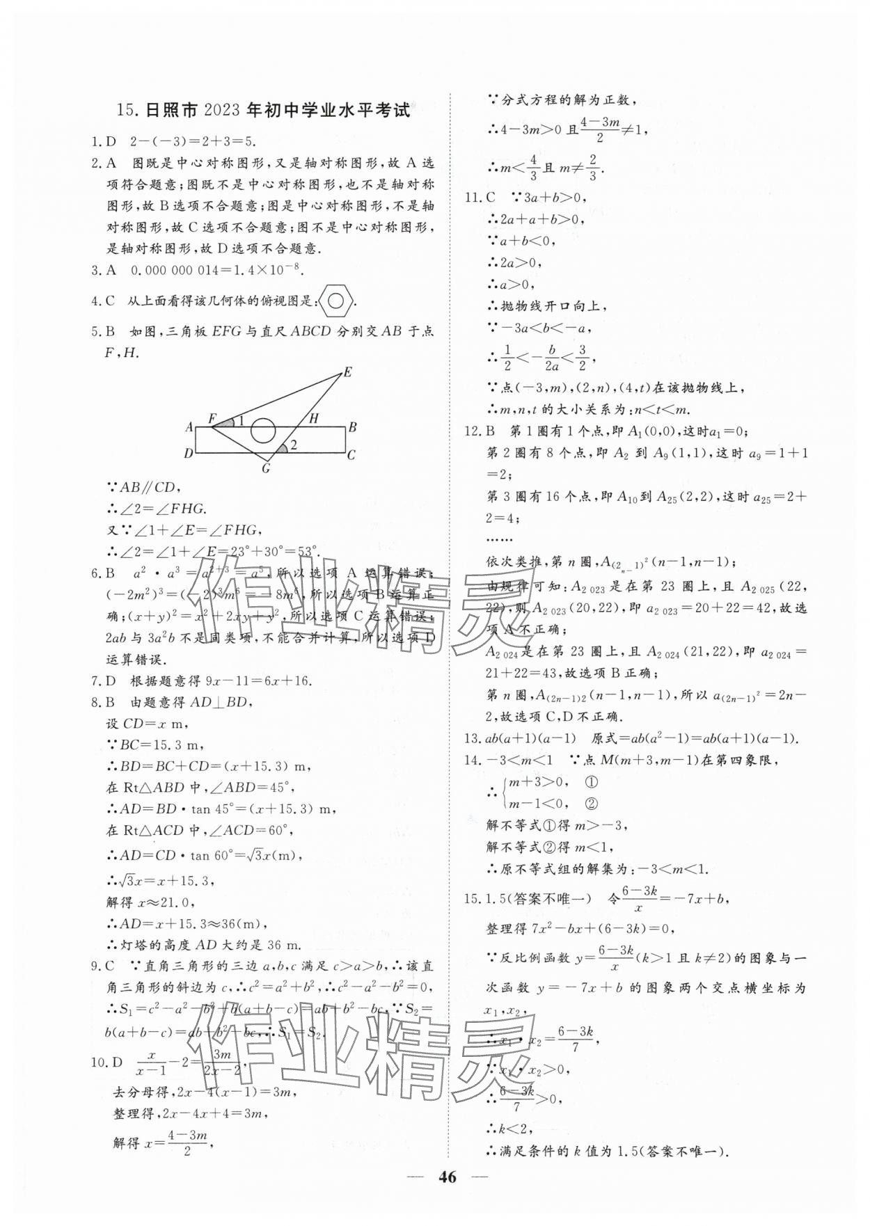 注:目前有些书本章节名称可能整理的还不是很完善,但都是按照顺序排列的,请同学们按照顺序仔细查找。练习册 2024年风向标初中学业水平测试山东省各地市中考试题汇编数学 答案主要是用来给同学们做完题方便对答案用的,请勿直接抄袭。