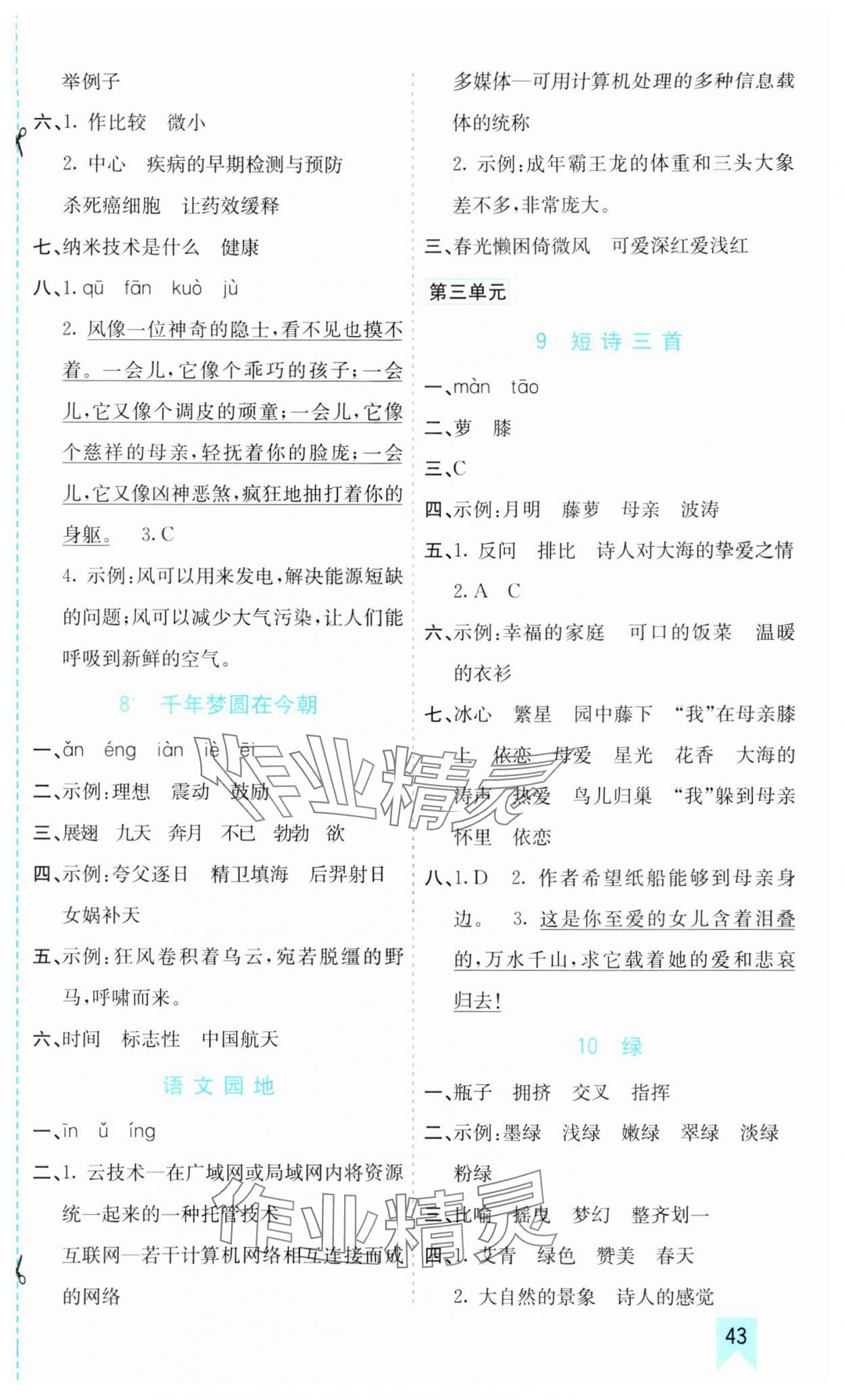 注:目前有些书本章节名称可能整理的还不是很完善,但都是按照顺序排列的,请同学们按照顺序仔细查找。练习册 2024年七彩课堂四年级语文下册人教版河南专版 答案主要是用来给同学们做完题方便对答案用的,请勿直接抄袭。