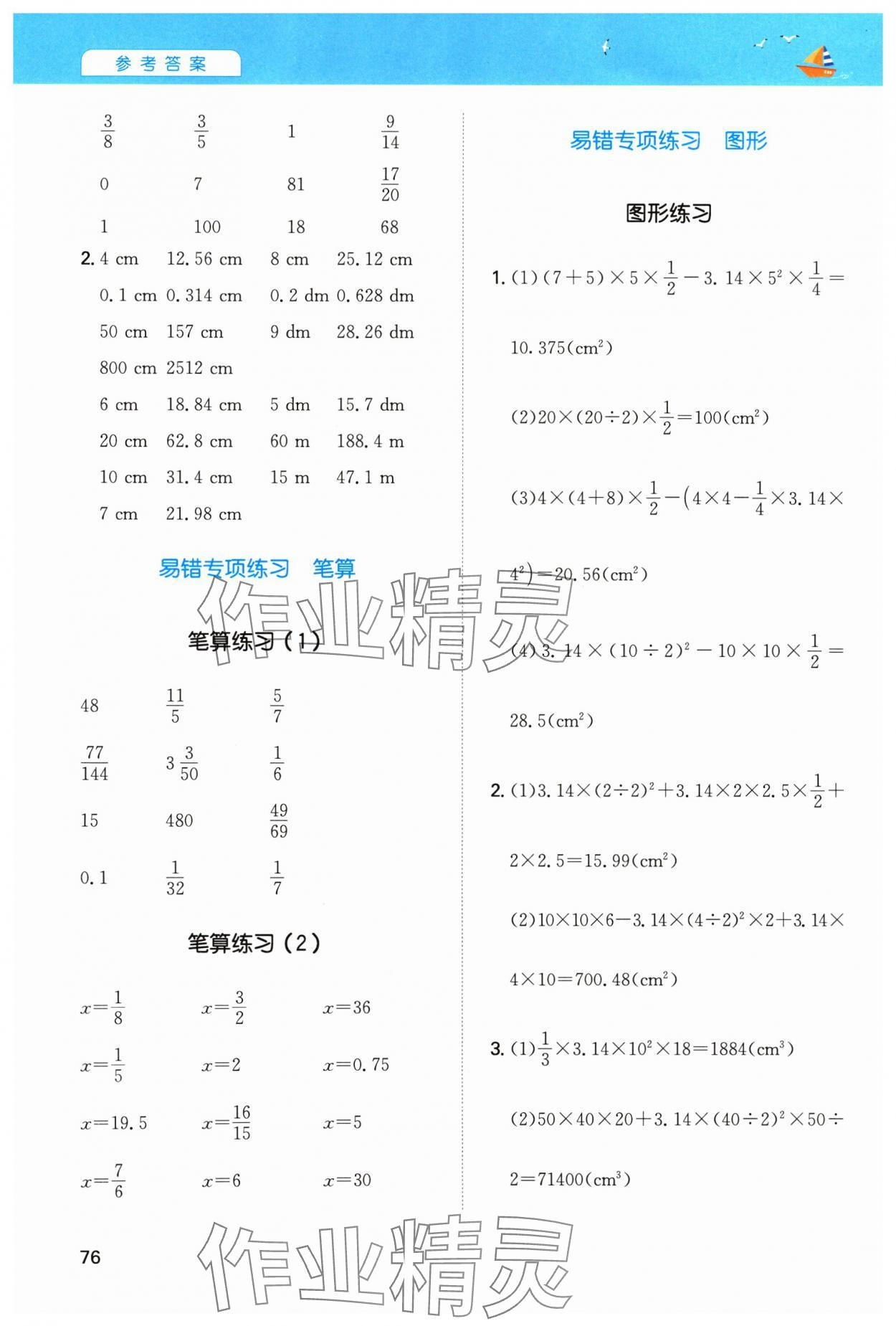 注:目前有些书本章节名称可能整理的还不是很完善,但都是按照顺序排列的,请同学们按照顺序仔细查找。练习册 2024年一本计算能力训练100分六年级数学下册人教版 答案主要是用来给同学们做完题方便对答案用的,请勿直接抄袭。