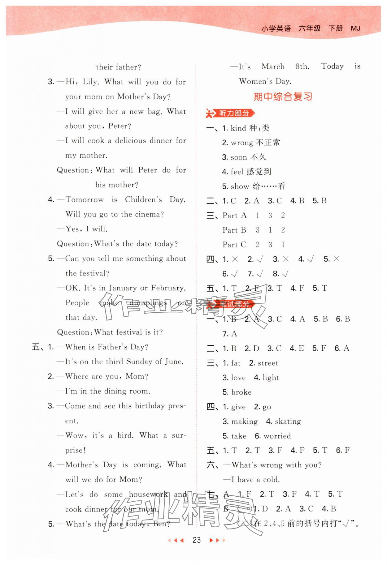 注:目前有些书本章节名称可能整理的还不是很完善,但都是按照顺序排列的,请同学们按照顺序仔细查找。练习册 2024年53天天练六年级英语下册闽教版 答案主要是用来给同学们做完题方便对答案用的,请勿直接抄袭。