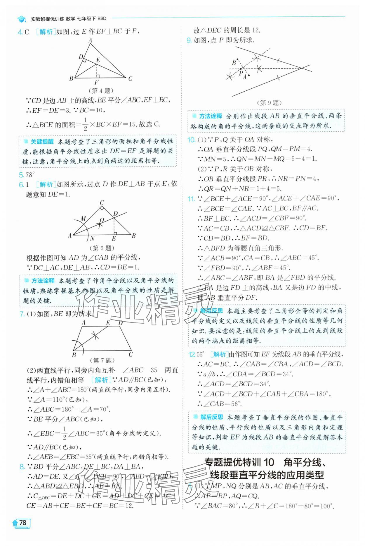 注:目前有些书本章节名称可能整理的还不是很完善,但都是按照顺序排列的,请同学们按照顺序仔细查找。练习册 2024年实验班提优训练七年级数学下册北师大版 答案主要是用来给同学们做完题方便对答案用的,请勿直接抄袭。