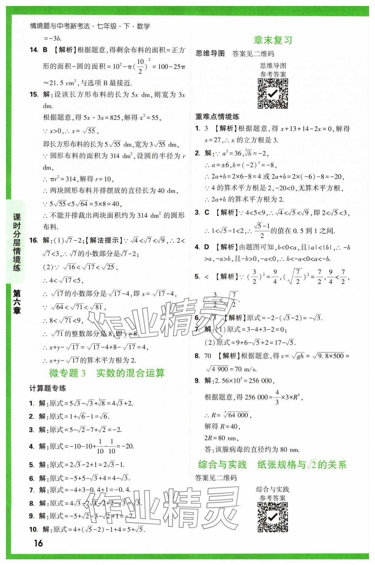 注:目前有些书本章节名称可能整理的还不是很完善,但都是按照顺序排列的,请同学们按照顺序仔细查找。练习册 2024年万唯中考情境题七年级数学下册人教版 答案主要是用来给同学们做完题方便对答案用的,请勿直接抄袭。