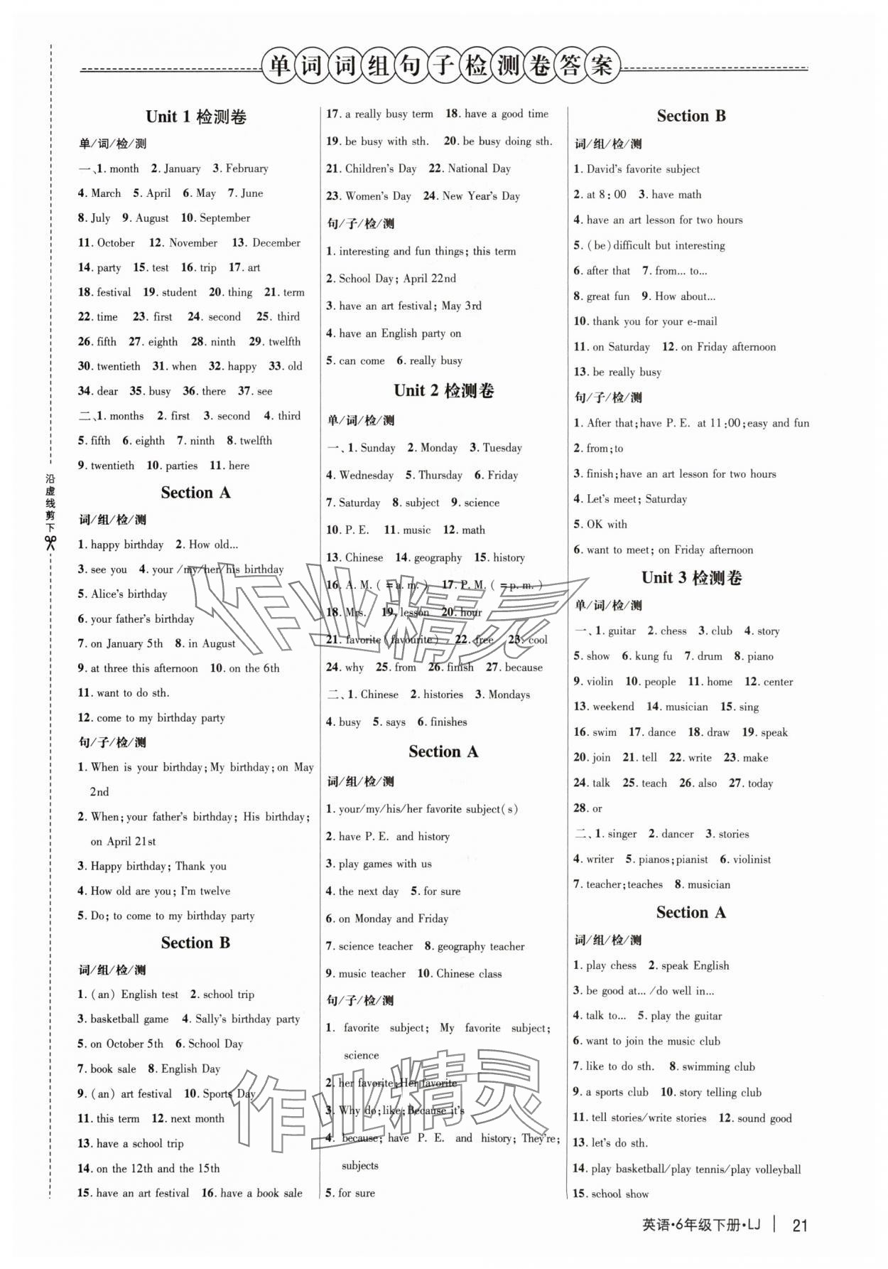 注:目前有些书本章节名称可能整理的还不是很完善,但都是按照顺序排列的,请同学们按照顺序仔细查找。练习册 2024年细解巧练六年级英语下册鲁教版五四制 答案主要是用来给同学们做完题方便对答案用的,请勿直接抄袭。
