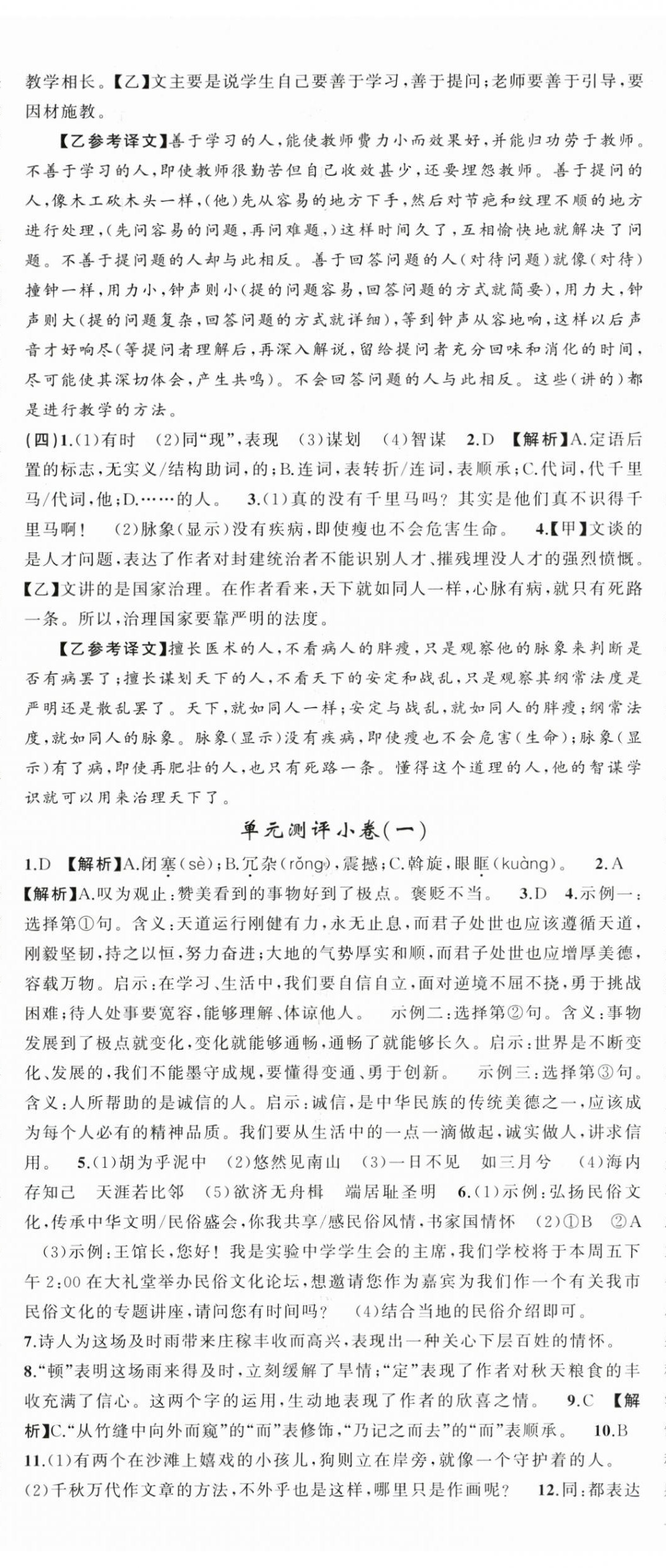 注:目前有些书本章节名称可能整理的还不是很完善,但都是按照顺序排列的,请同学们按照顺序仔细查找。练习册 2024年黄冈金牌之路练闯考八年级语文下册人教版 答案主要是用来给同学们做完题方便对答案用的,请勿直接抄袭。