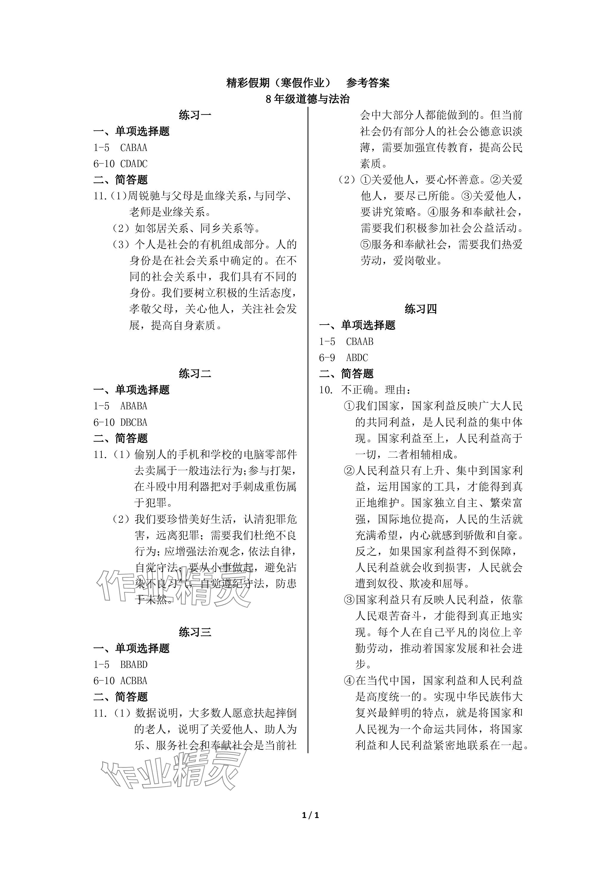 注:目前有些书本章节名称可能整理的还不是很完善,但都是按照顺序排列的,请同学们按照顺序仔细查找。练习册 2024年鹏教图书精彩假期寒假篇八年级 答案主要是用来给同学们做完题方便对答案用的,请勿直接抄袭。